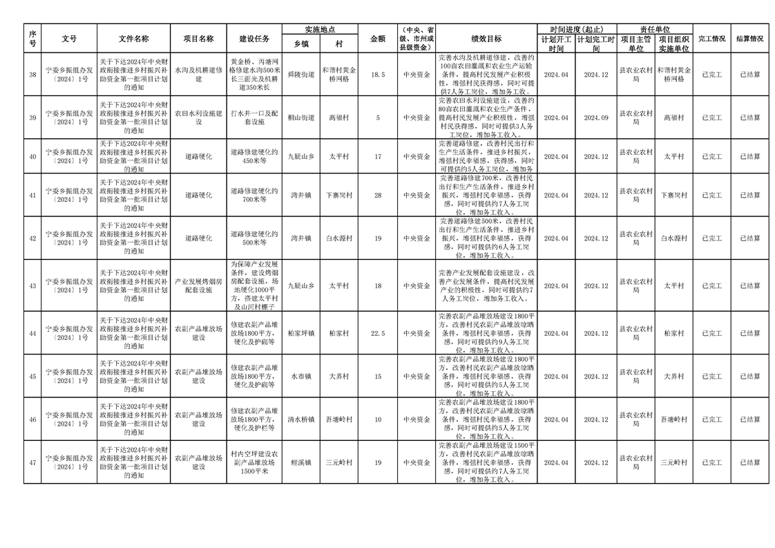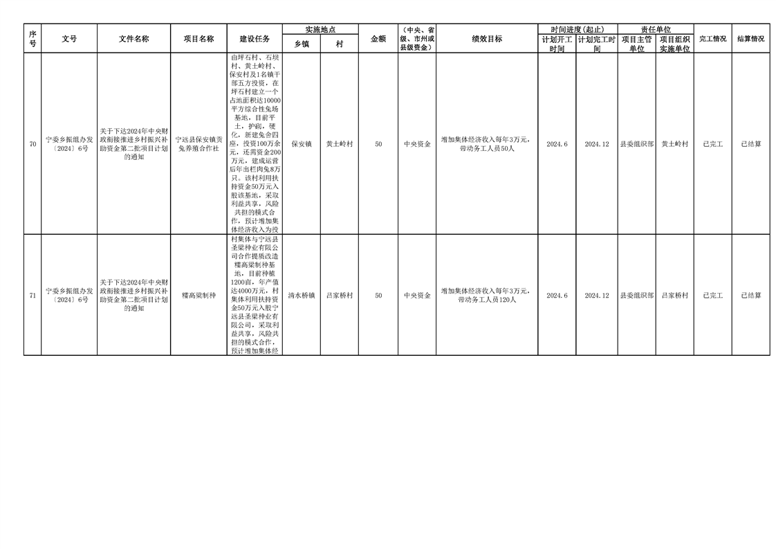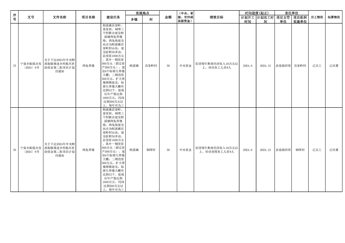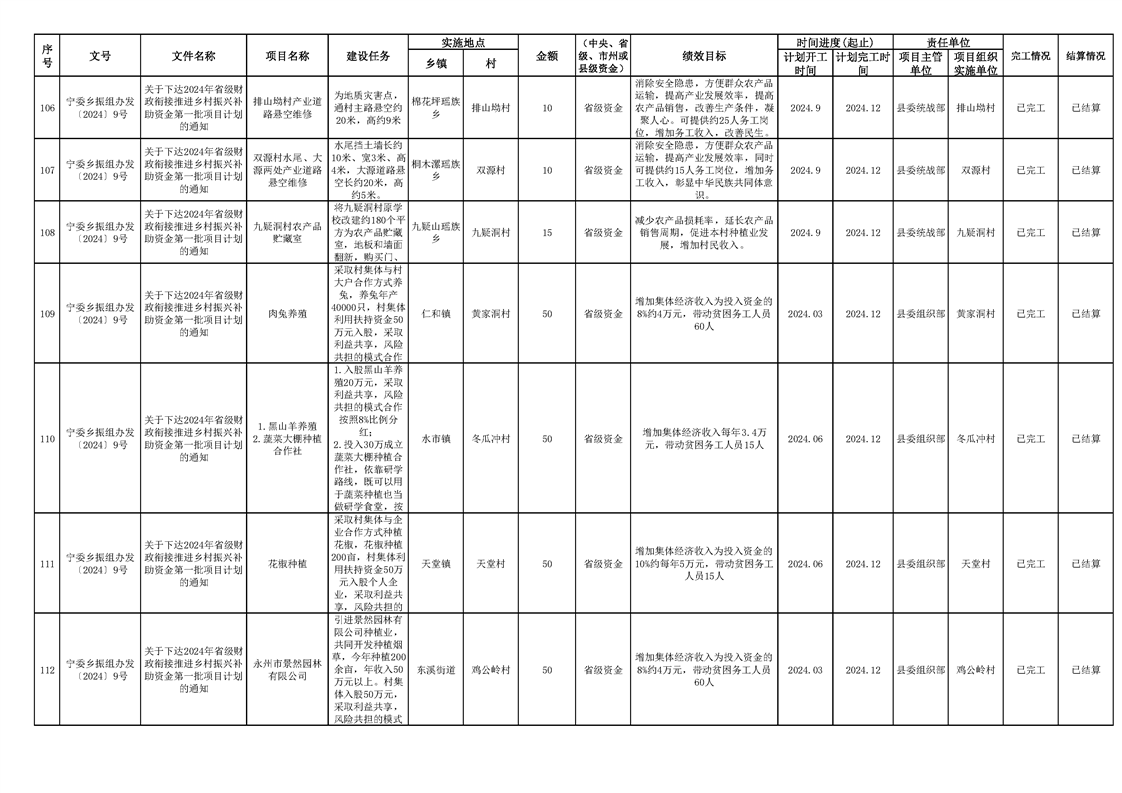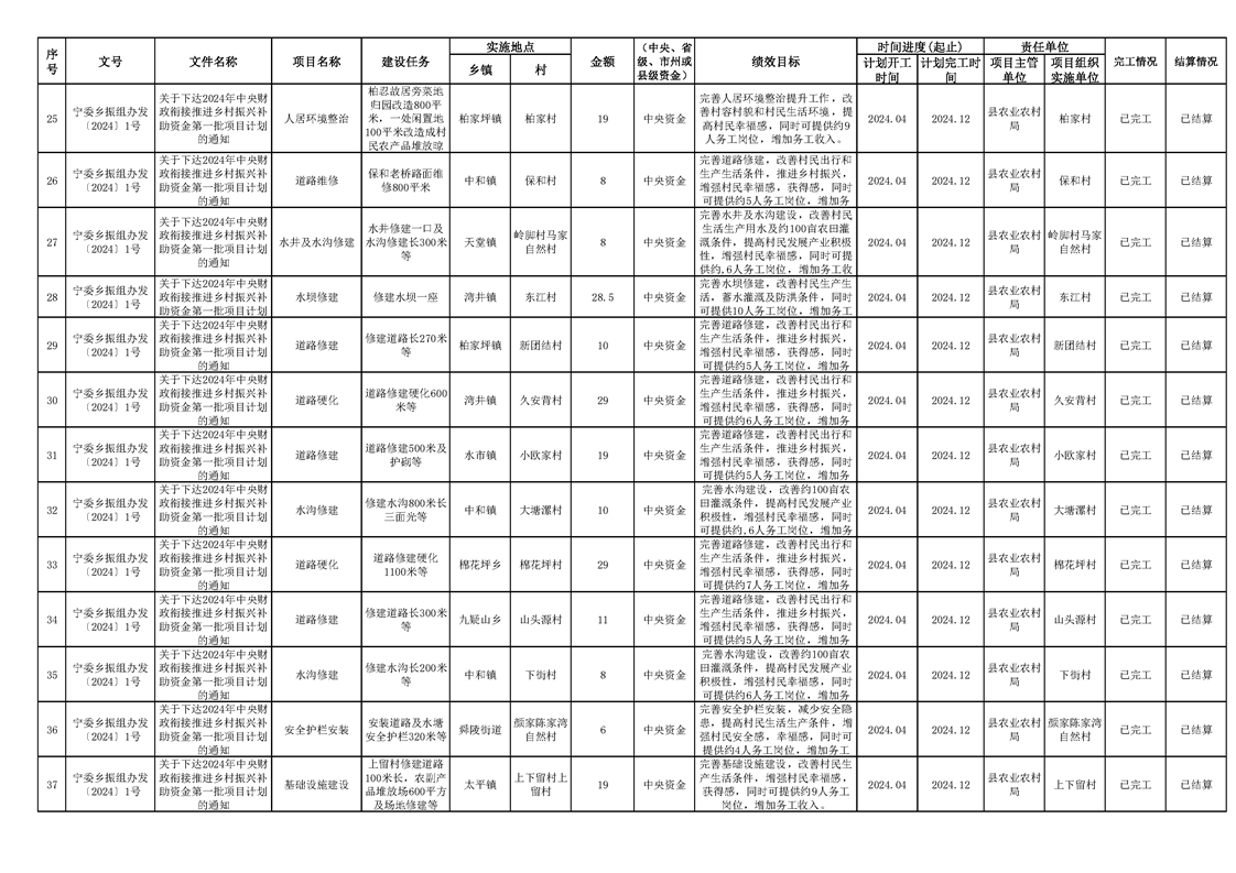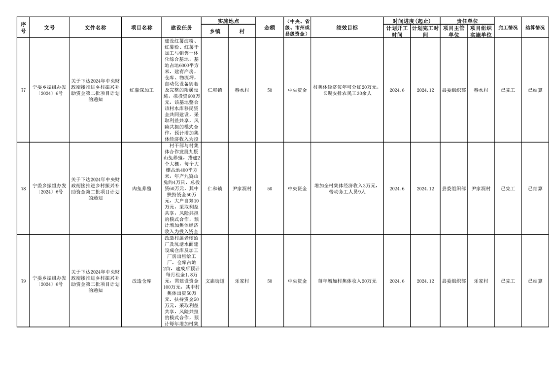 2024年财政衔接乡村振兴补助资金项目计划完成情况
