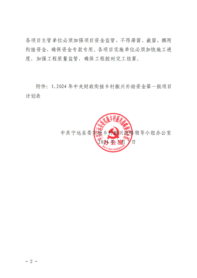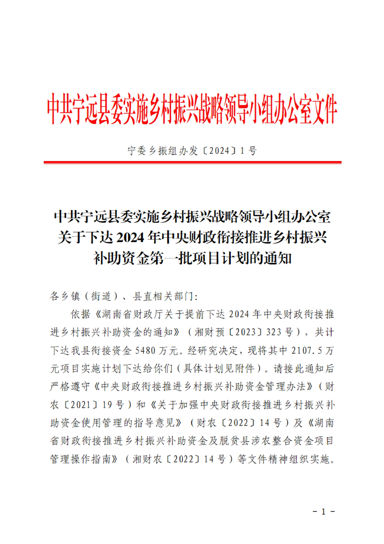 关于下达2024年中央财政衔接推进乡村振兴补助资金第一批项目计划的通知