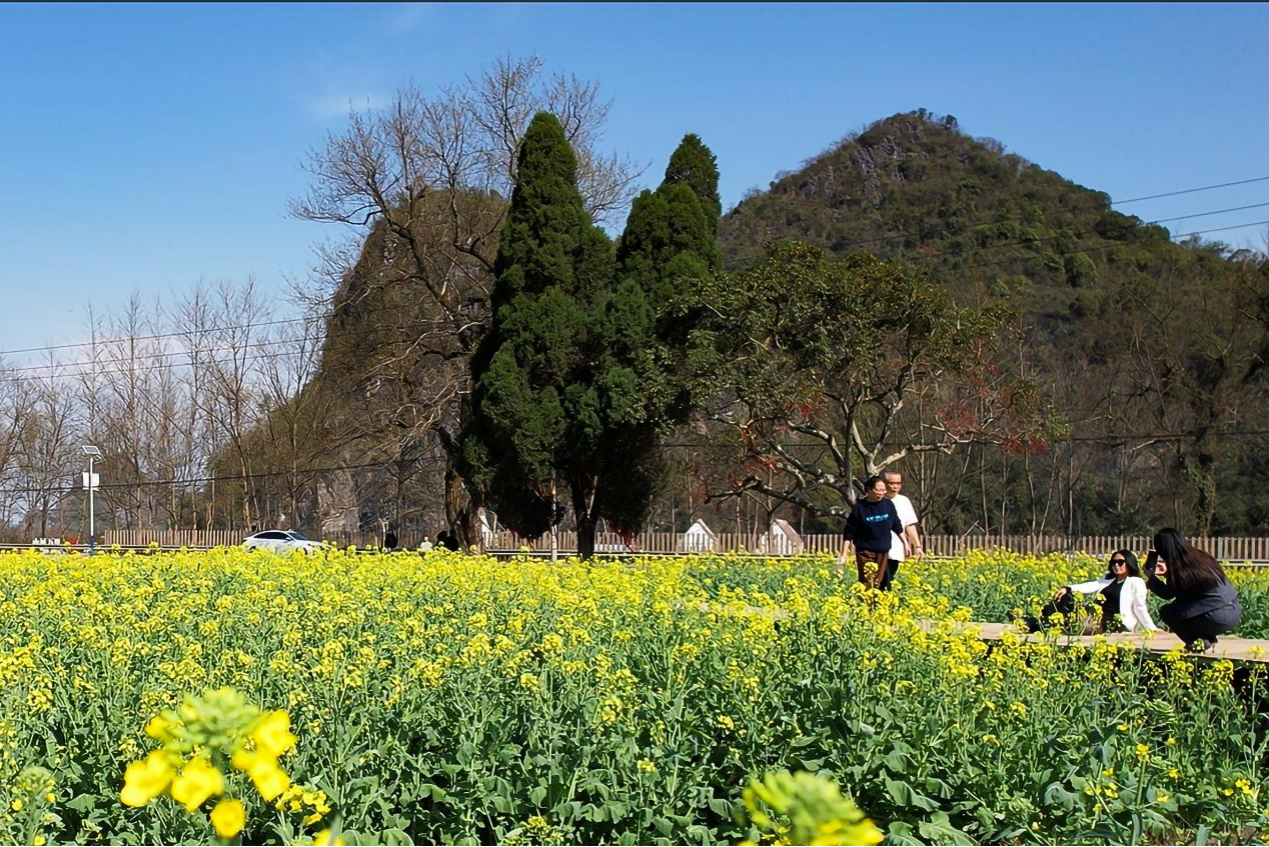 春回大地,万物复苏。连日来,宁远县东江村的油菜花竞相绽放,金灿灿的花海与蓝天白云、青山绿水交相辉映,构成一幅美丽的春日画卷,众多游客前来踏青赏花,感受春天的气息。