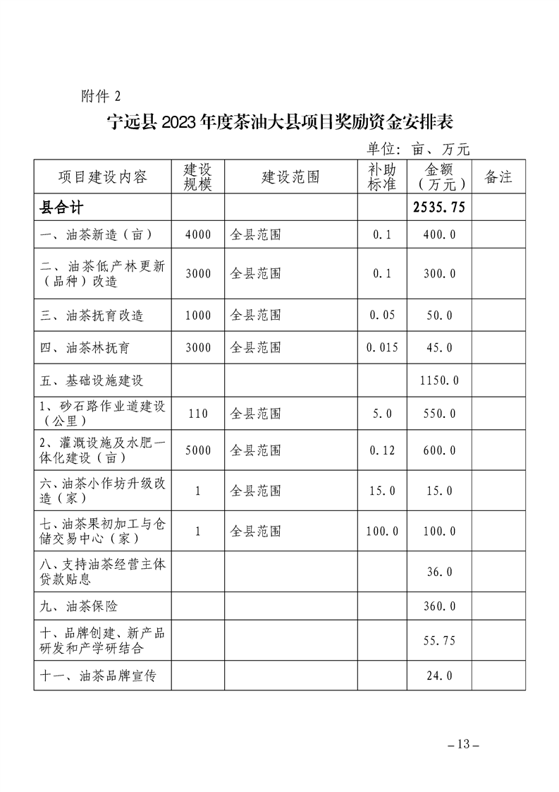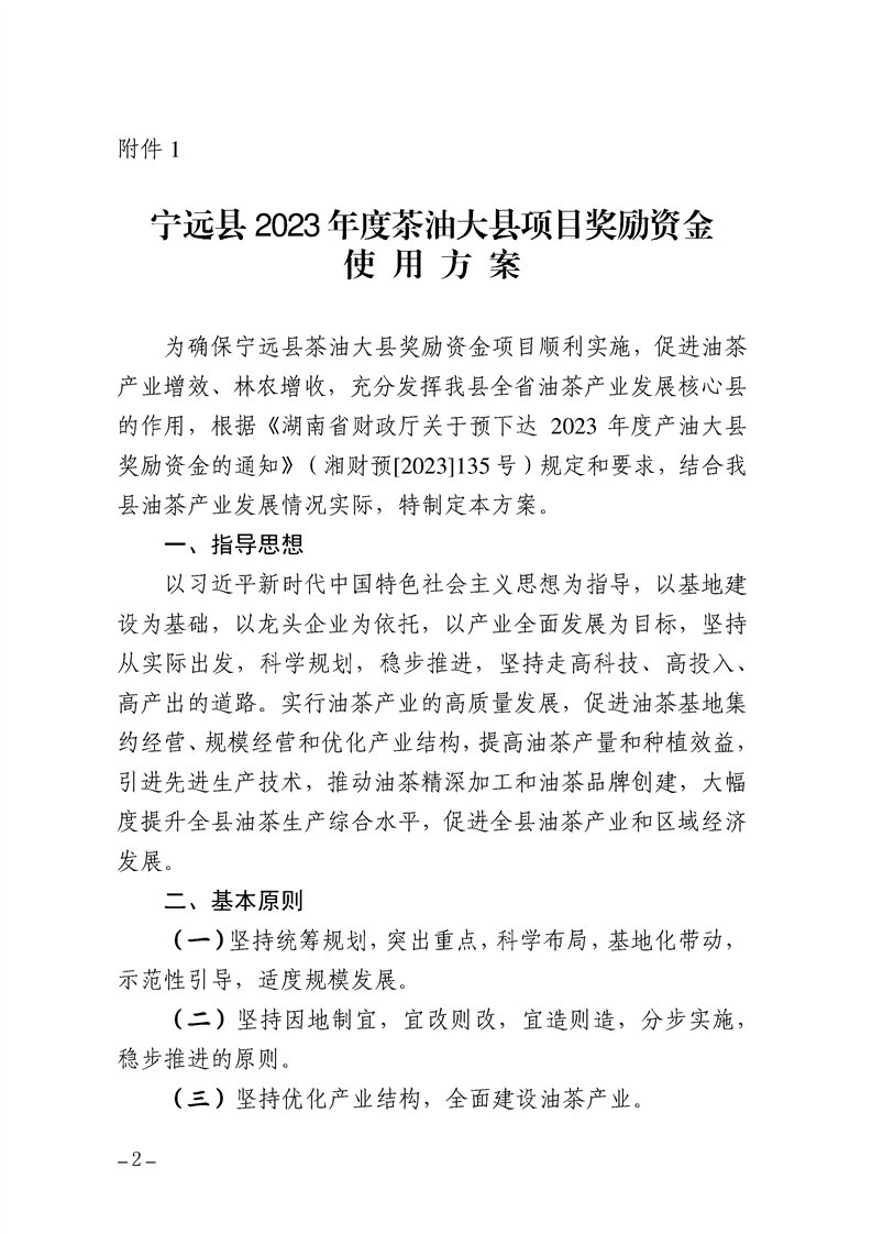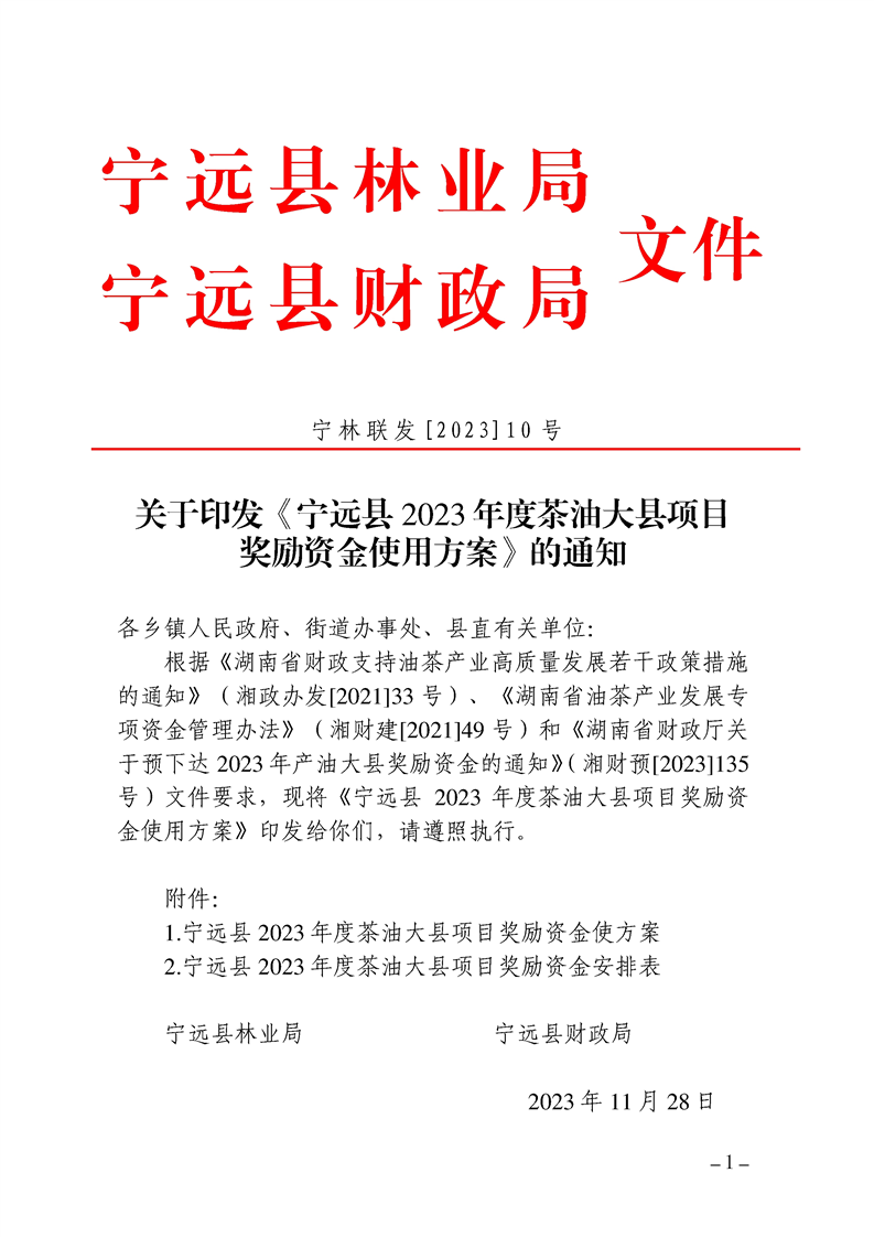 关于印发《宁远县2023年度茶油大县项目奖励资金使用方案》的通知