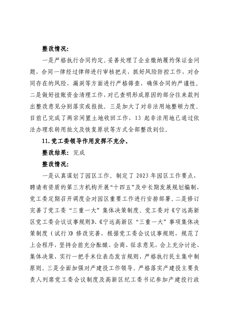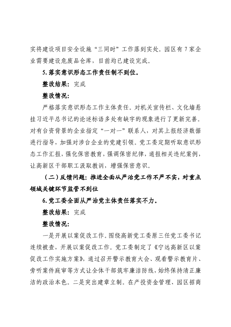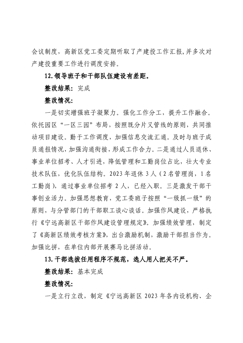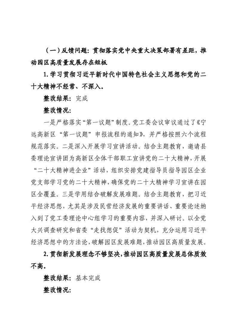 中共宁远高新区党工委关于巡察整改进展情况的通报