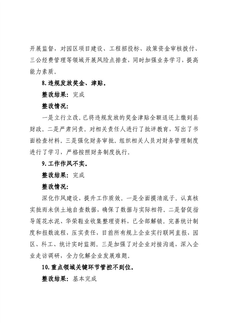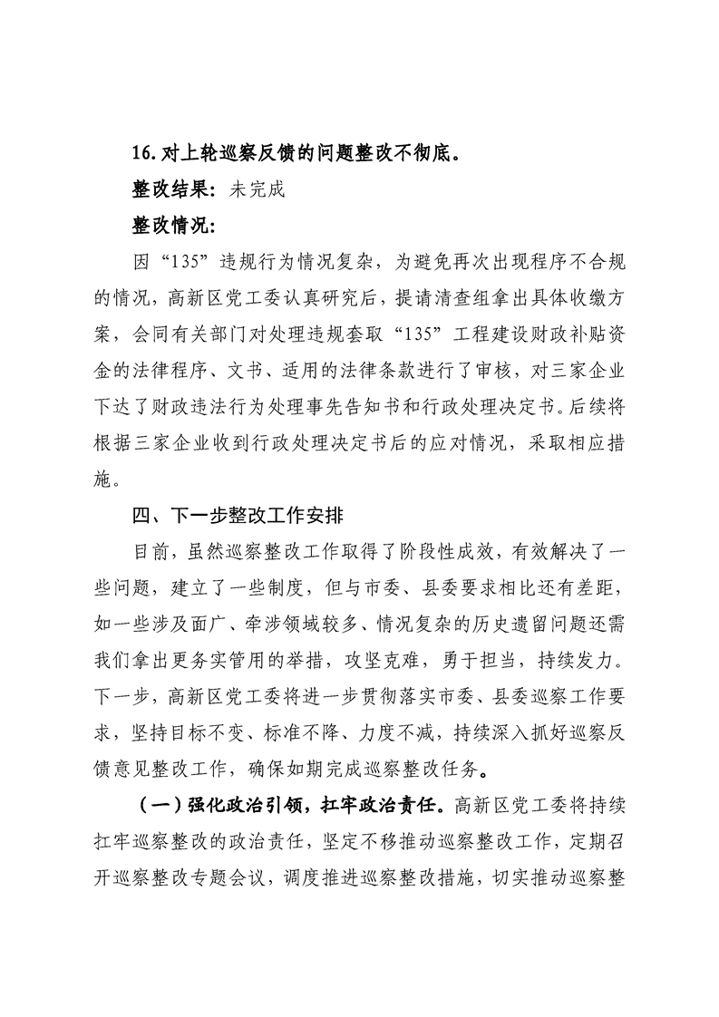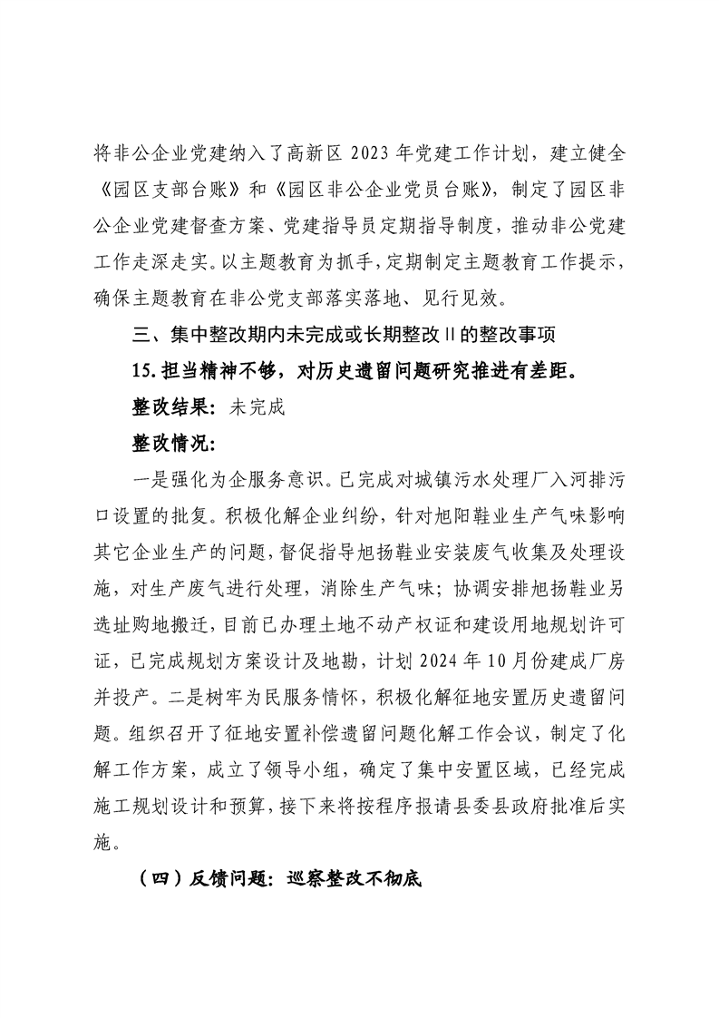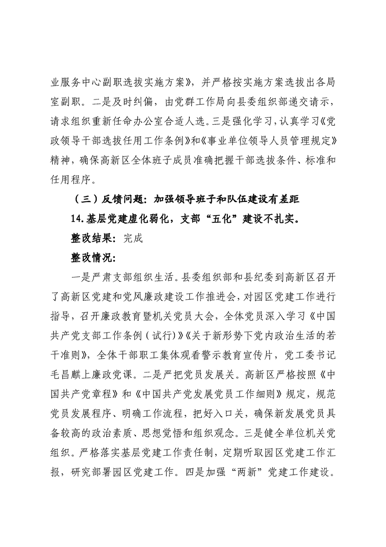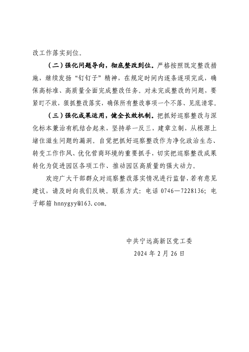 中共宁远高新区党工委关于巡察整改进展情况的通报
