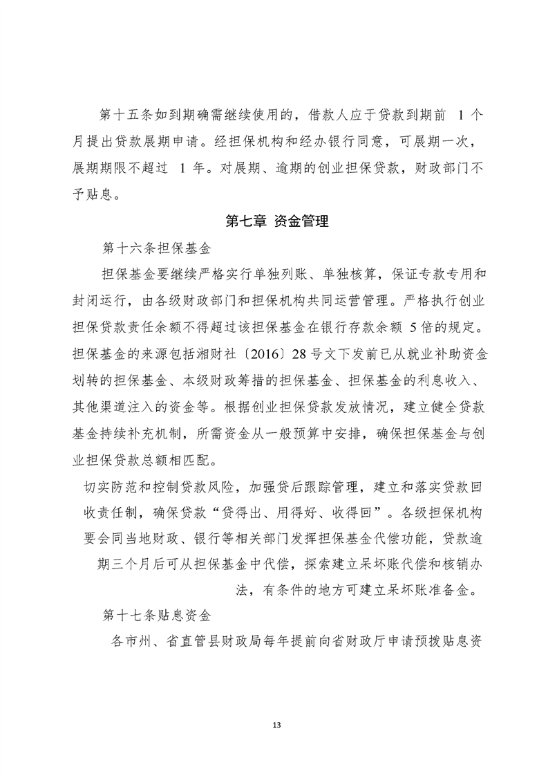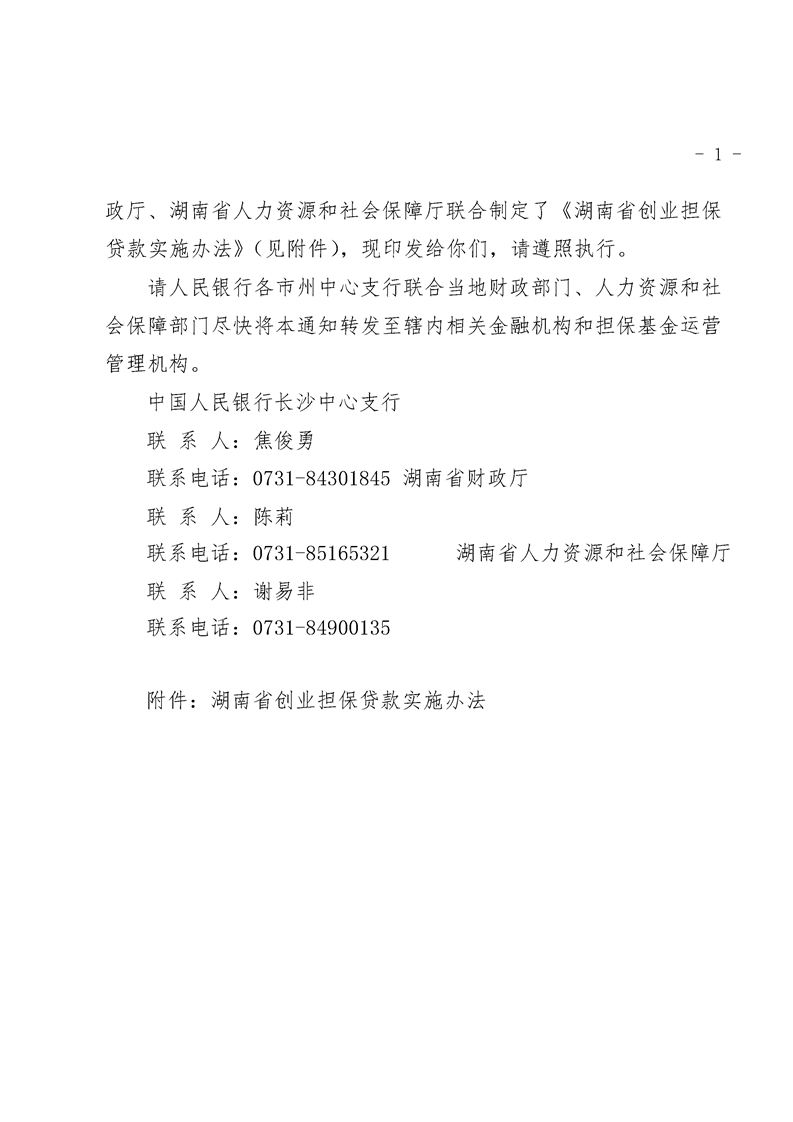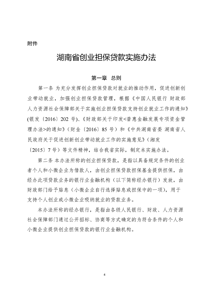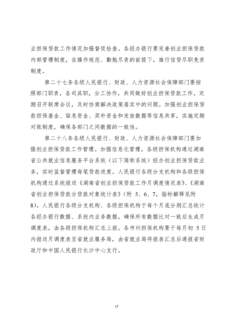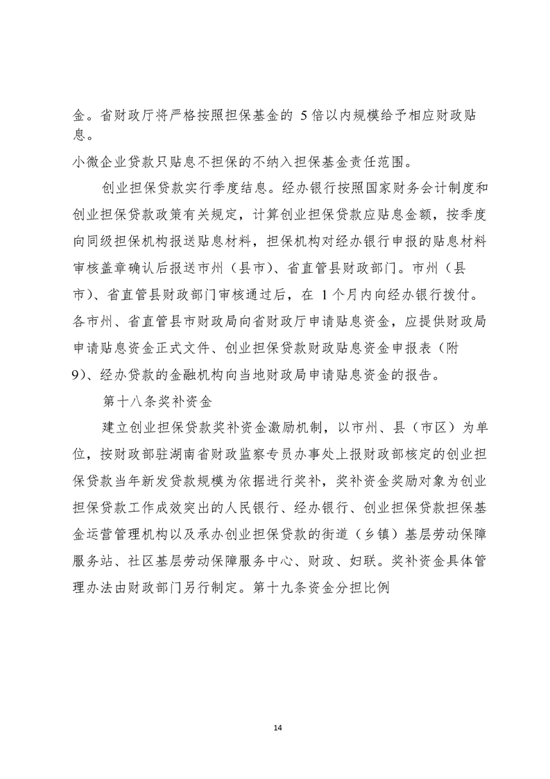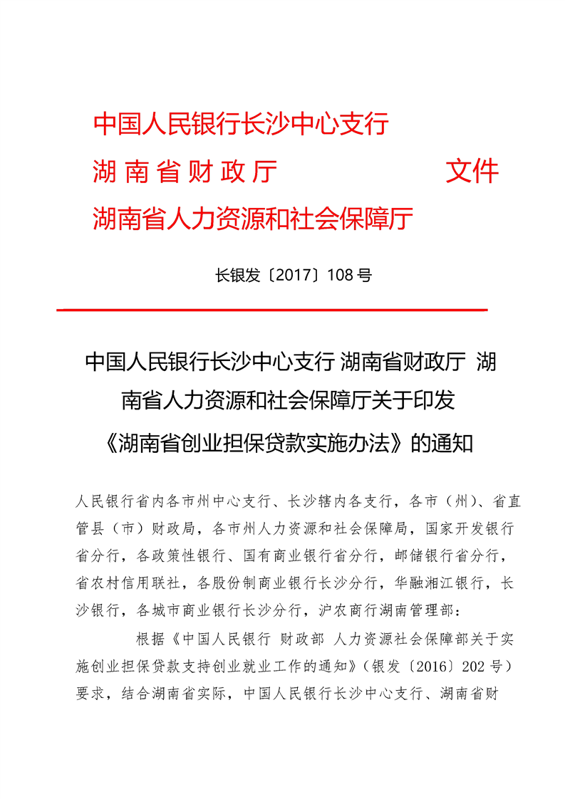 关于印发《湖南省创业担保贷款实施办法》的通知