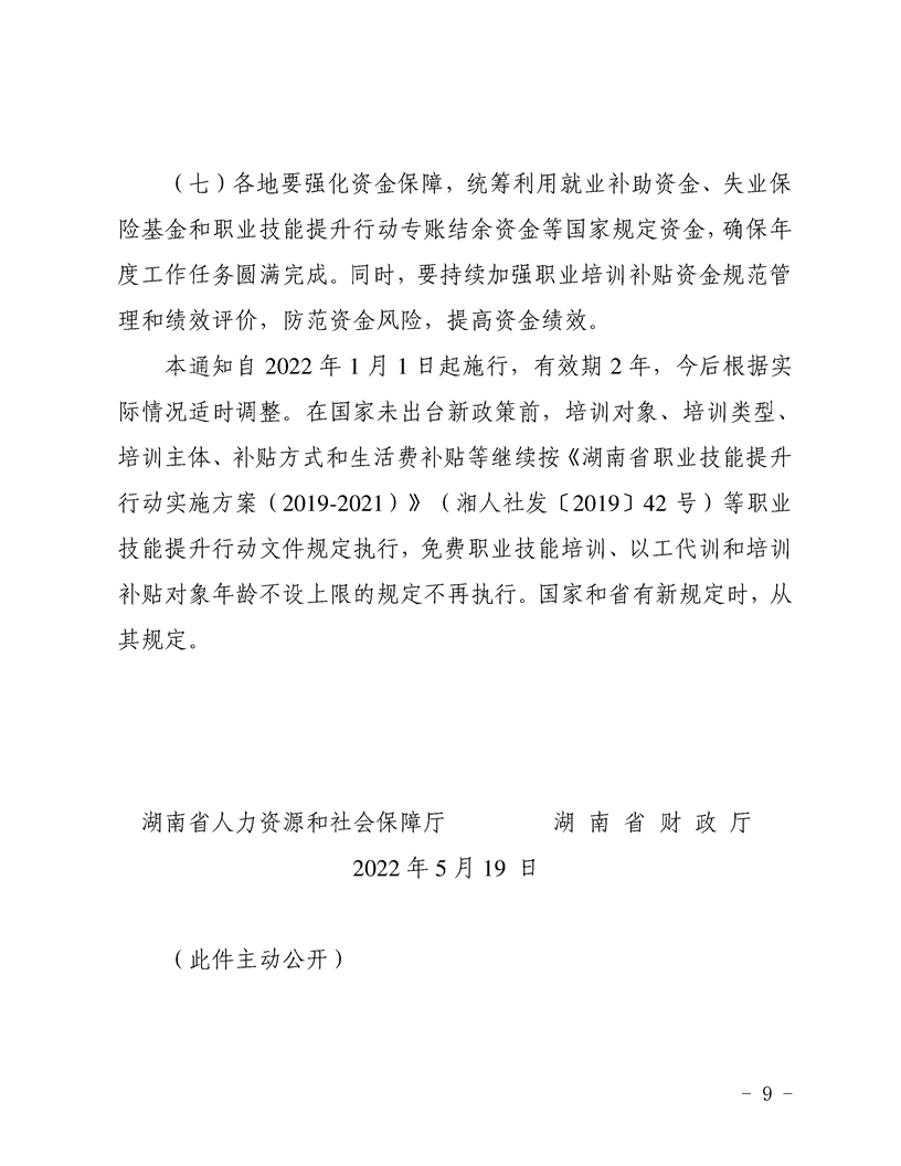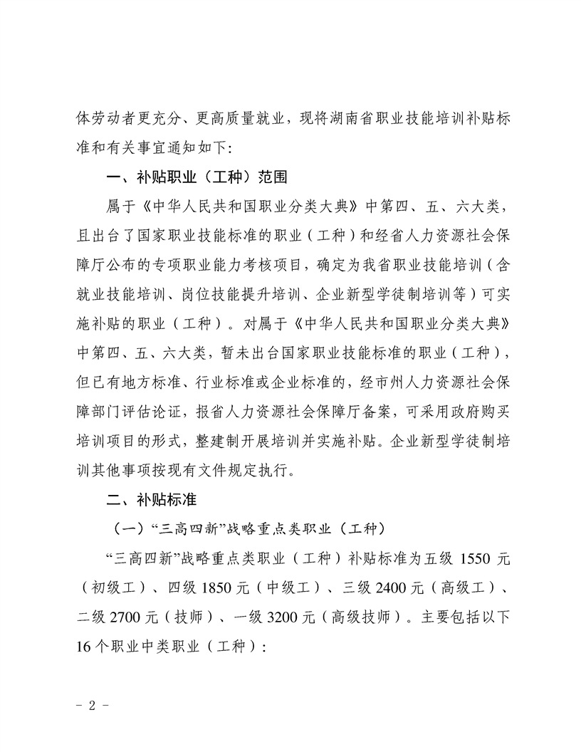 湖南省人力资源和社会保障厅 湖南省财政厅关于明确湖南省职业技能培训补贴标准的通知(试行)