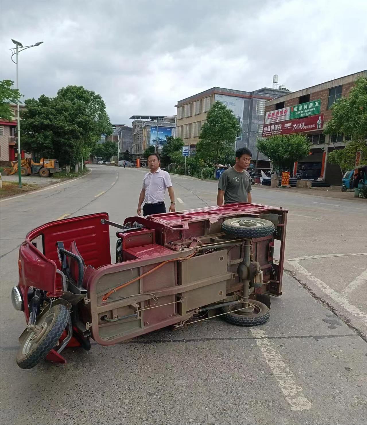 5月11日,宁远县鲤溪镇鲤溪村229省道距离镇政府近400米的分岔路口,一辆三轮车侧翻在道路中央,给道路两侧通行车辆带来潜在安全隐患,关键时刻,该镇副镇长王钟涛、自然资源所所长黄胜军、工作人员李泉、唐运林齐心协力安全转移侧翻三轮车,有效避免了人民群众生命、财产安全遭受损失。