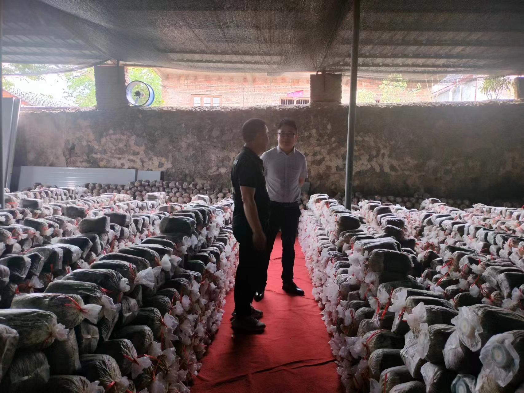 四年前,宁远县保安镇结合“稳就业、强基础、富家乡”主题活动,积极开展引老乡、回家乡、建故乡活动,蒋土强响应号召,主动放弃在外从事建筑装修的稳定工作,返乡在自家庭院内试种灵芝。经过两年多的摸索,种植成功,让他尝到了甜头。2023年底,在保安镇政府的大力支持下,蒋土强在李巳村成立禾益灵芝栽培中心,并从外地请来了专业技术人员合作,准备扩大种植规模,进行林下灵芝种植。
