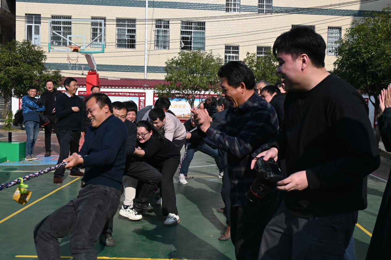 比赛在镇运动场举行,全镇干部职工分为六组参加比赛。随着一声响亮的哨音,以拔河比赛正式开始。赛场上,干部职工们个个精神焕发、斗志昂扬,他们紧握绳子,双脚用力着地,身体微微后倾,齐心协力地将绳子拉向自己一方。