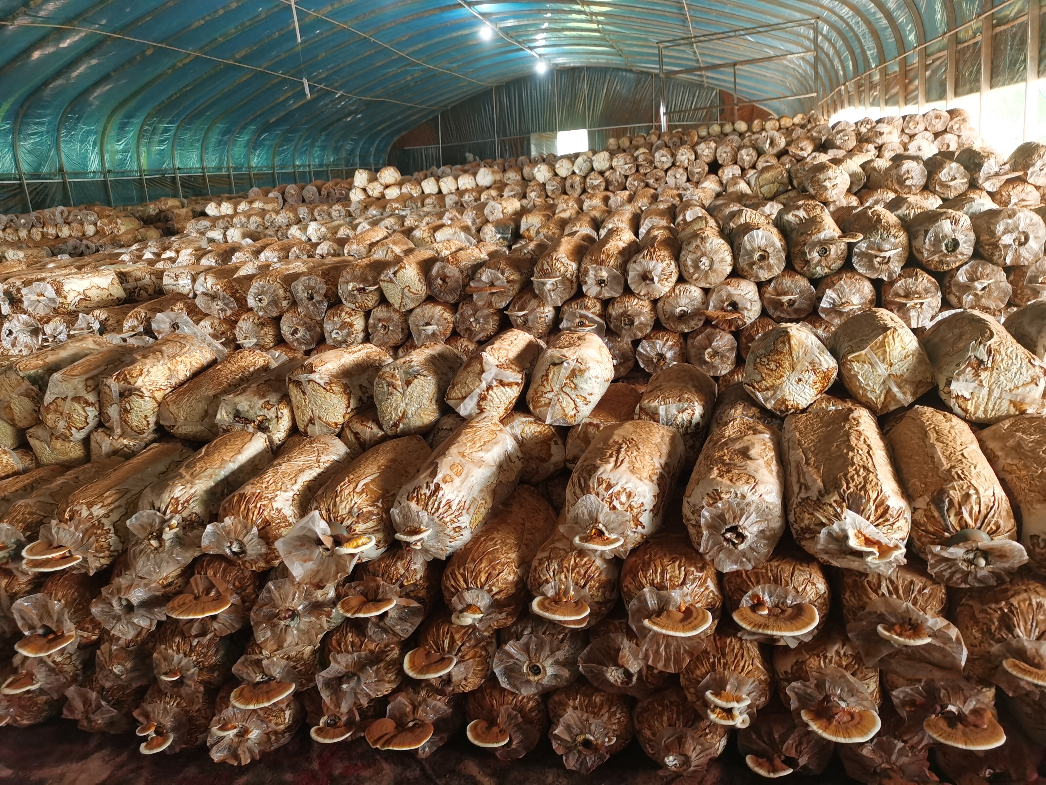 走进昏暗的灵芝种植大棚,处处洋溢着丰收的喜悦。“我们基地自建了菌棒生产线,今年2月生产灵芝栽培卷20万包,今年小批量试种5万包。这是今年采收的第二批灵芝,孢子粉质量和灵芝株重都十分不错,预计可采集400斤孢子粉,2000余斤灵芝切片,正在密封大棚内晒粉、晒实体。”灵芝种植基地管理人欧阳维辉介绍说。45岁的村民王阿姨是大棚的常客。“坐在凳子上扫灵芝孢子粉,一天挣130元,活不重!”她笑着说。采摘灵芝需要大量人员负责采摘、分拣、扫粉、晾晒、包装等工作,高峰期种植基地内需要用工20多人,有效带动了周边村民就近就业和增收致富。