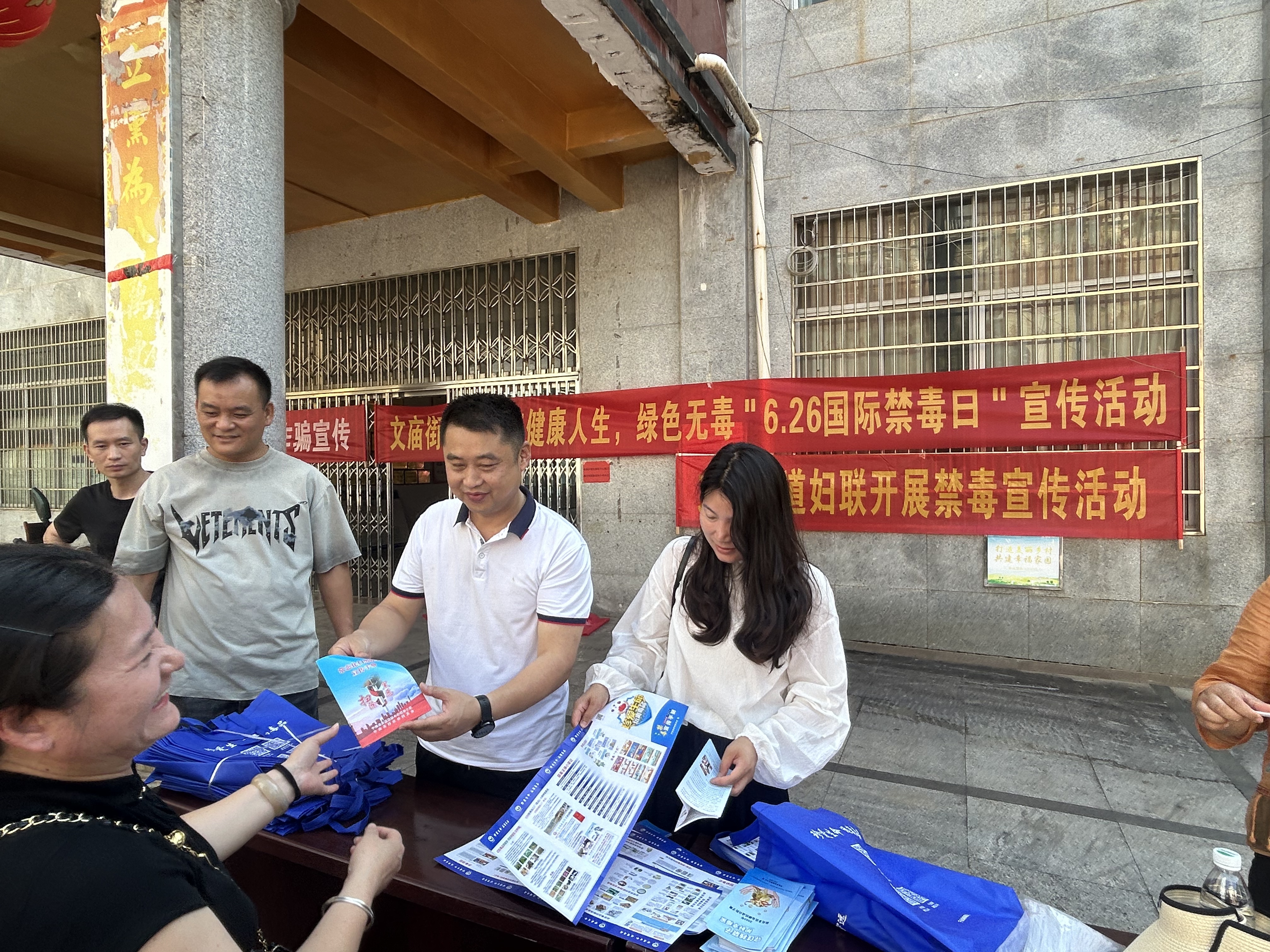 6月26日上午,文庙街道联合派出所、妇联在辖区开展“6·26”国际禁毒日集中宣传活动。