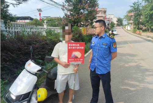 为筑牢道路交通安全防线,该乡综合执法大队联合应急办推出人性化执法劝导举措:不再简单开具罚单,而是由执法人员引导其手持提示牌拍照,并配文“请大家引以为戒”转发至朋友圈。对于没有微信的村民,则请他们从通讯录中选出5位亲友拨打电话,亲口讲述自己未戴头盔被劝导的经历,叮嘱家人“骑车一定要戴头盔”。这种“面子教育”既让违规者直面自身错误,更以亲情、乡情为纽带,让安全警示从执法现场扩散到千家万户,真正实现“一人受教、众人警醒”的辐射效应。