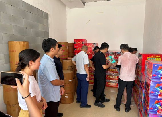 (图为执法检查组一行在下灌村状元超市检查烟花爆竹仓库)