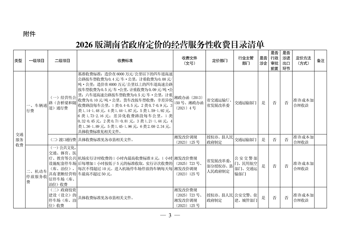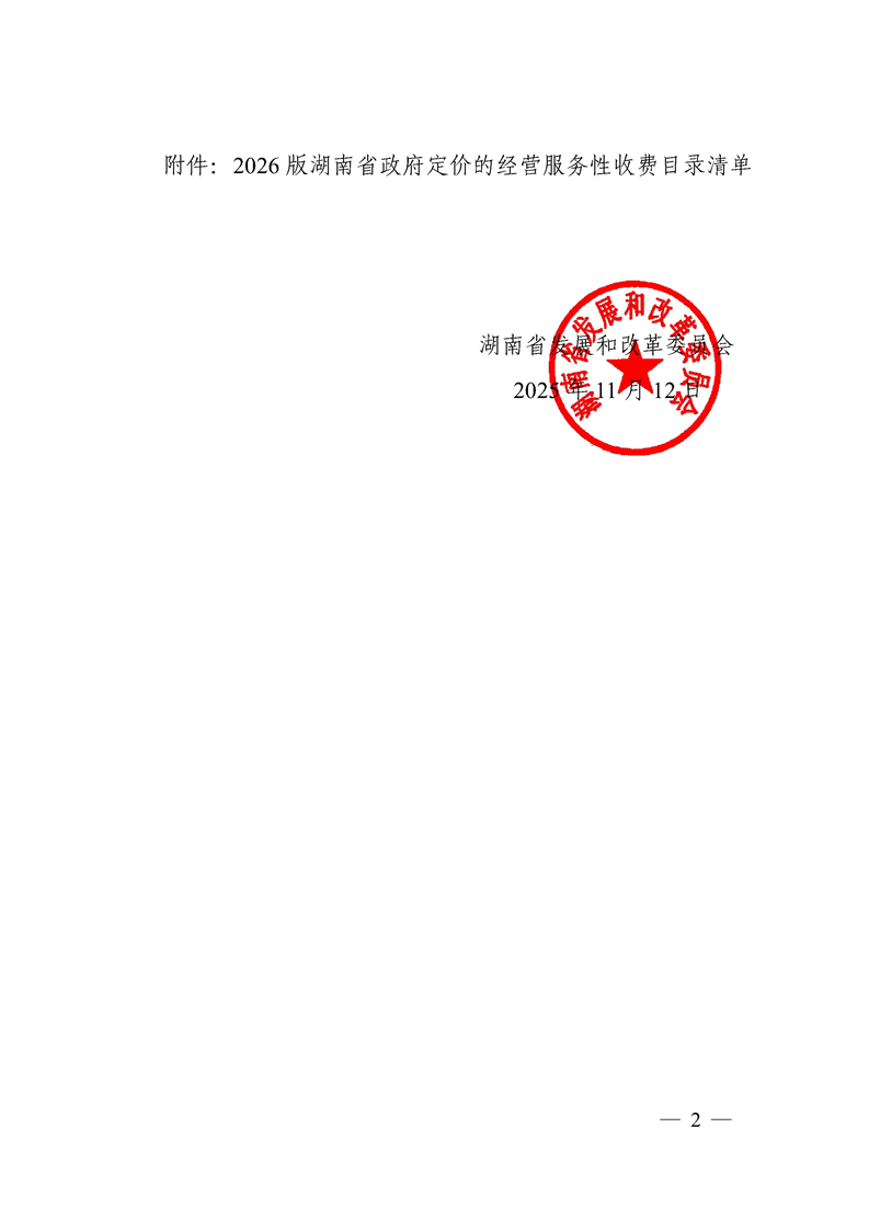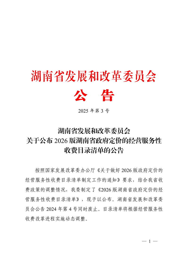 关于公布2026版湖南省政府定价的经营服务性收费目录清单的公告