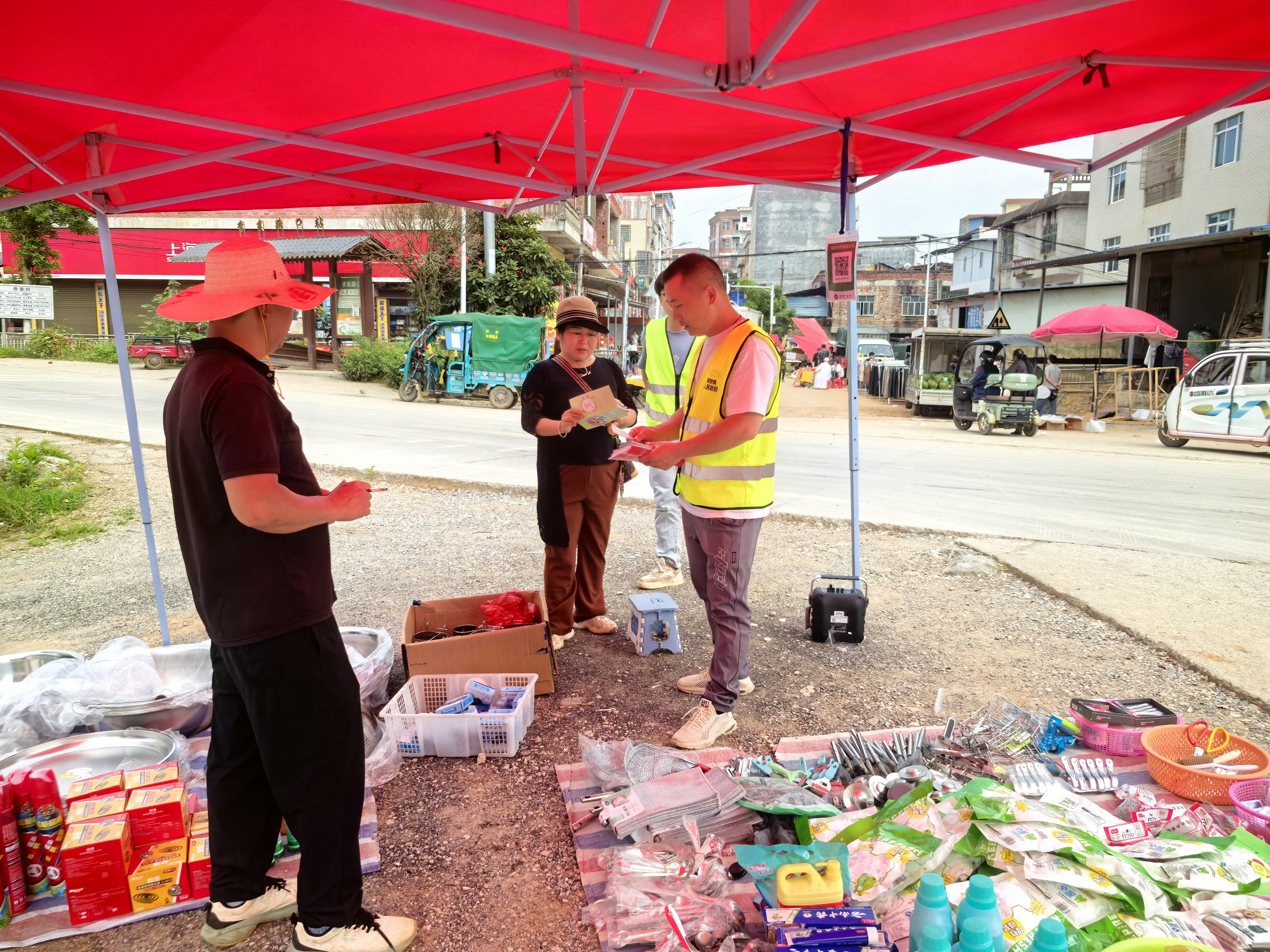 为扎实推进2025年“人人讲安全、个个会应急——查找身边安全隐患”安全生产月主题,6月4日,保安镇组织镇司法所、综治办、应急办等工作人员在保安集市开展宣传活动,筑牢安全生产防线。
