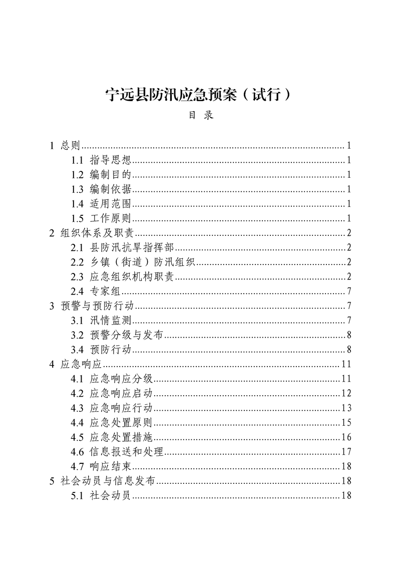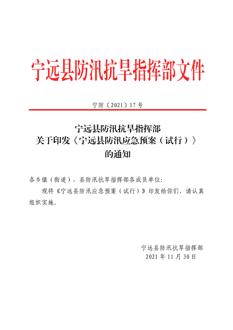 宁远县防汛抗旱指挥部关于印发《宁远县防汛应急预案(试行)》的通知
