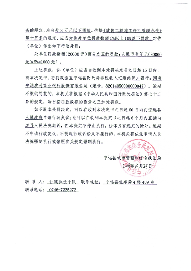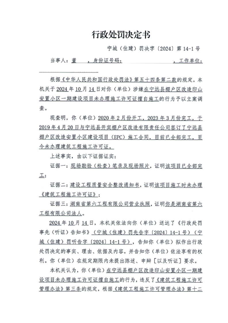 行政处罚决定书 宁城(住建)罚决字〔2024〕第14-1号