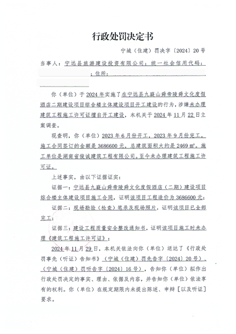 行政处罚决定书 宁城(住建)罚决字〔2024〕20号