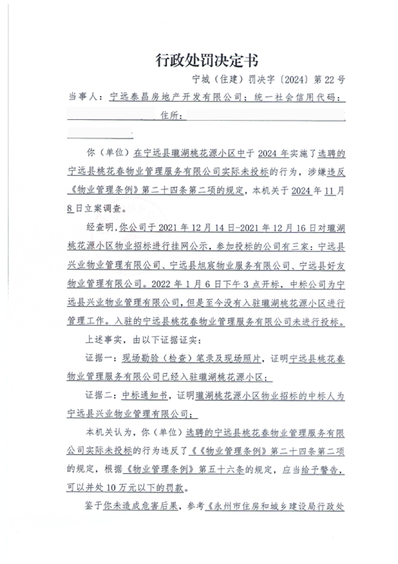 行政处罚决定书 宁城(住建)罚决字〔2024〕第22号