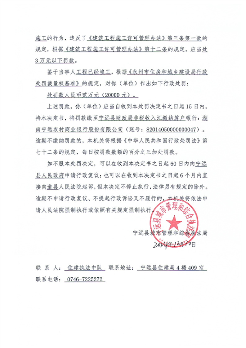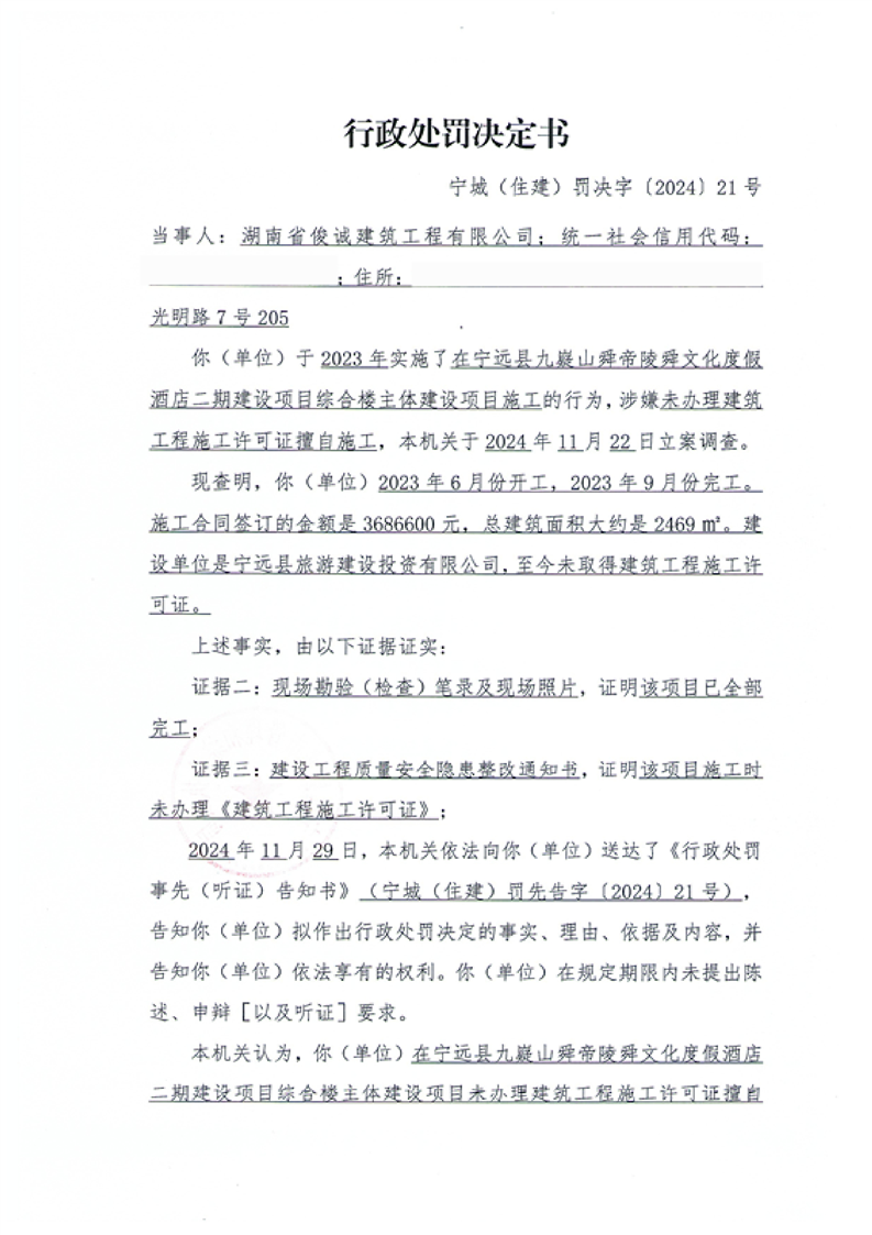 行政处罚决定书 宁城(住建)罚决字〔2024〕21号