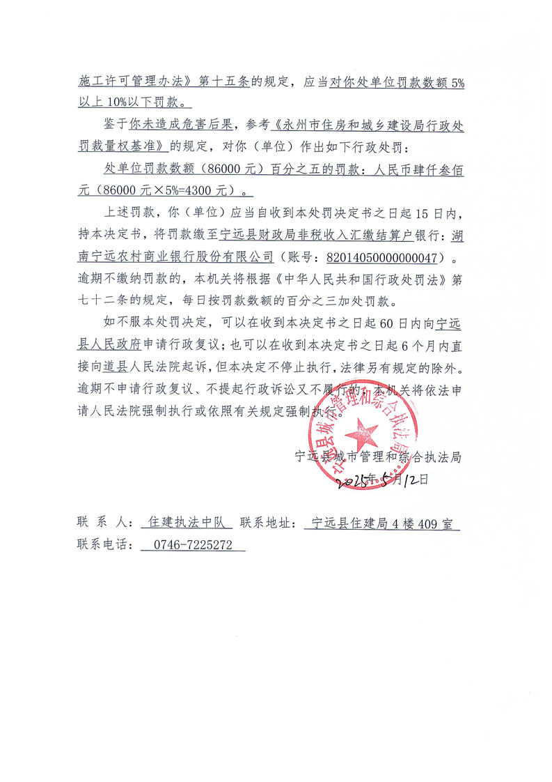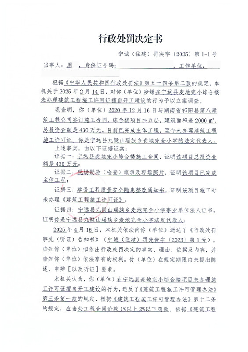 行政处罚决定书 宁城(住建)罚决字〔2025〕第1-1号