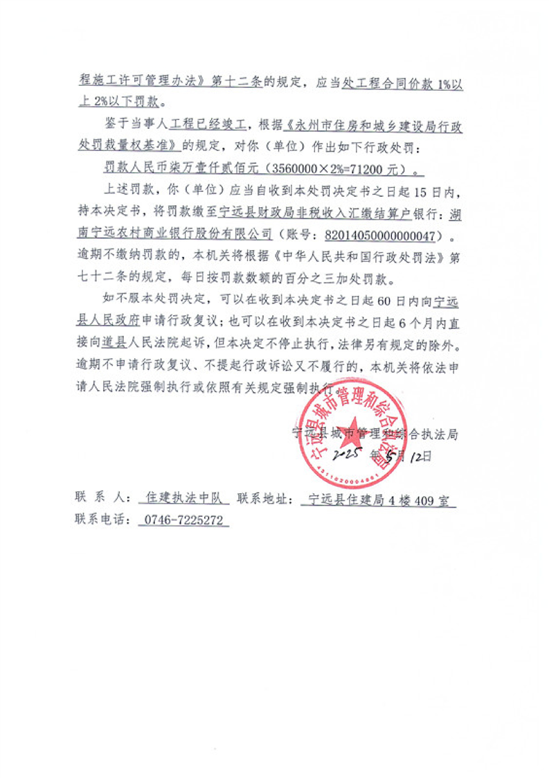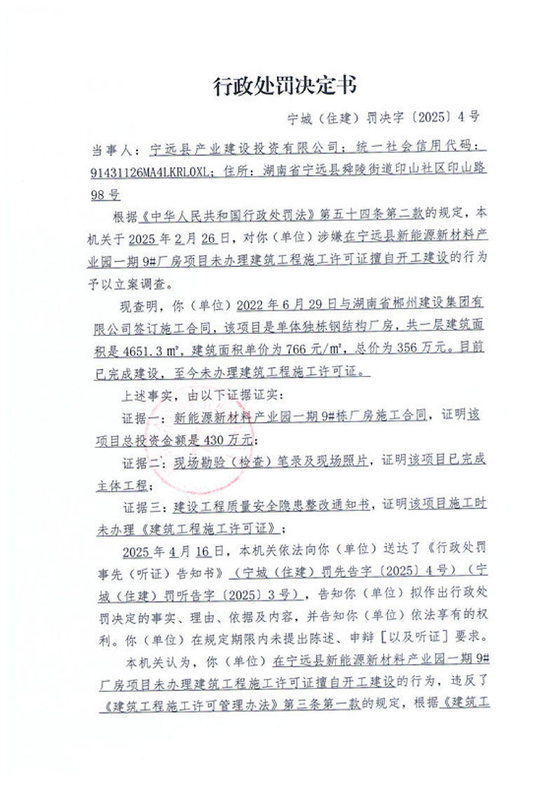 行政处罚决定书 宁城(住建)罚决字〔2025〕4号