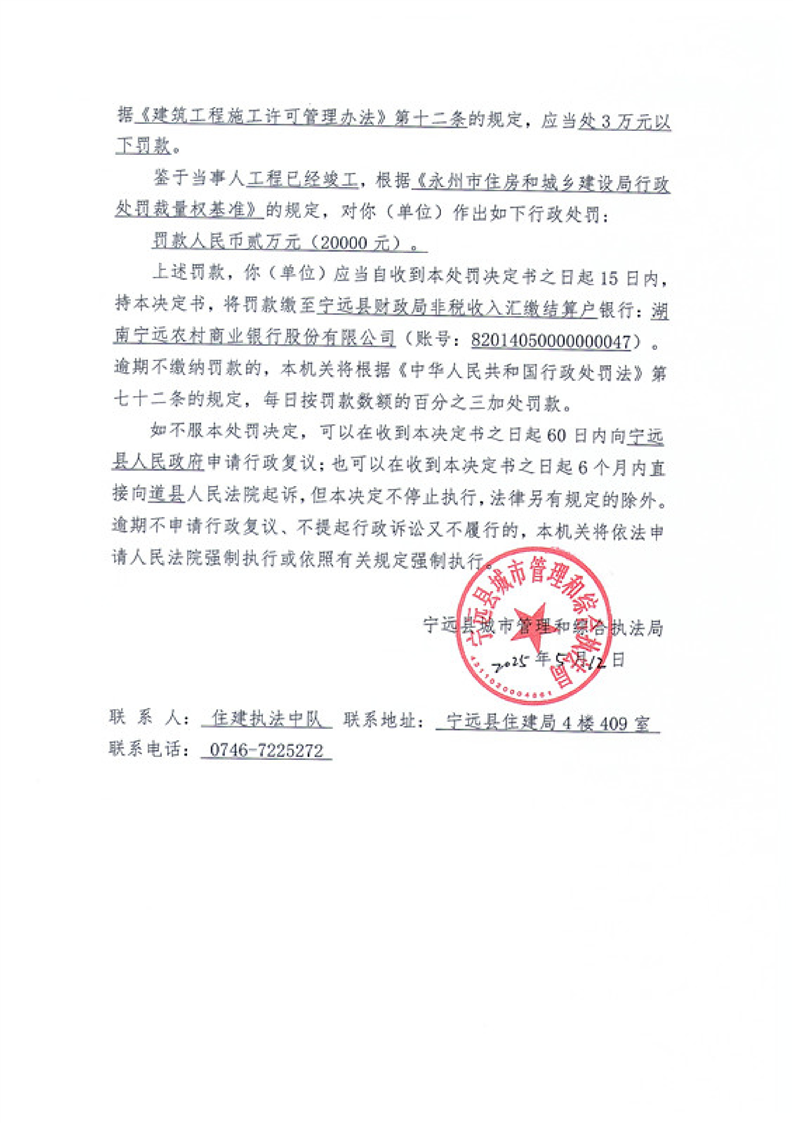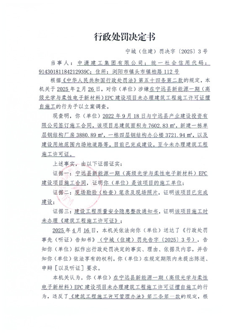 行政处罚决定书 宁城(住建)罚决字〔2025〕3号