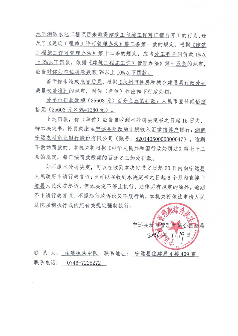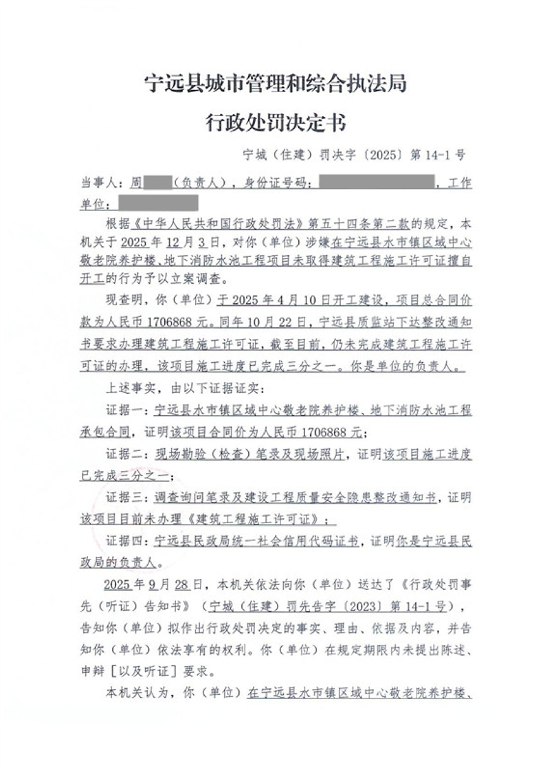 行政处罚决定书 宁城(住建)罚决字〔2025〕第14-1号