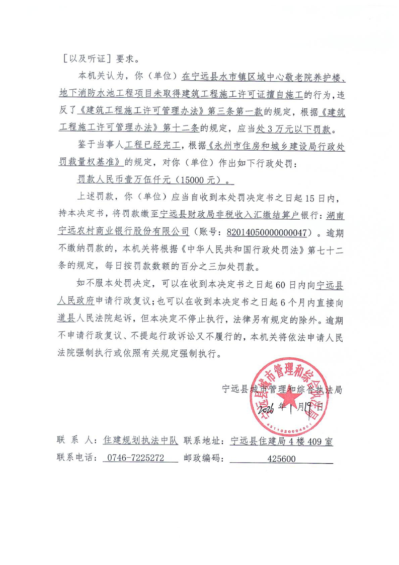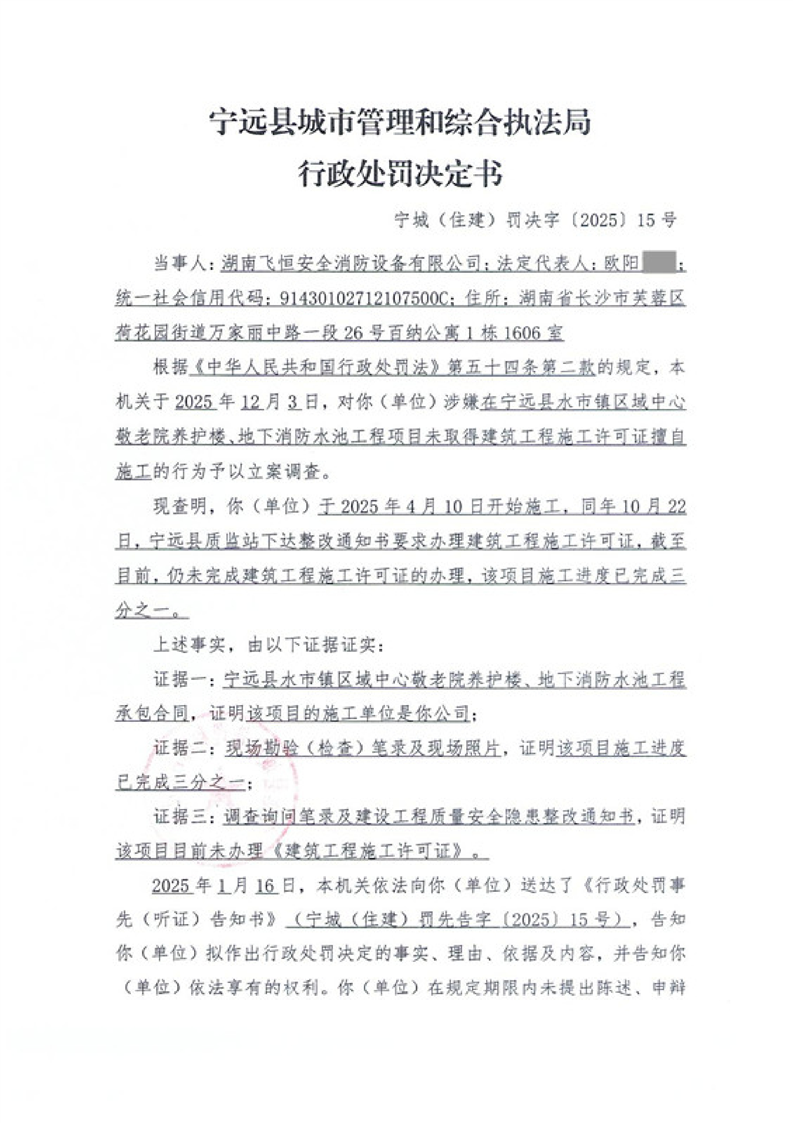 行政处罚决定书 宁城(住建)罚决字〔2025〕15号