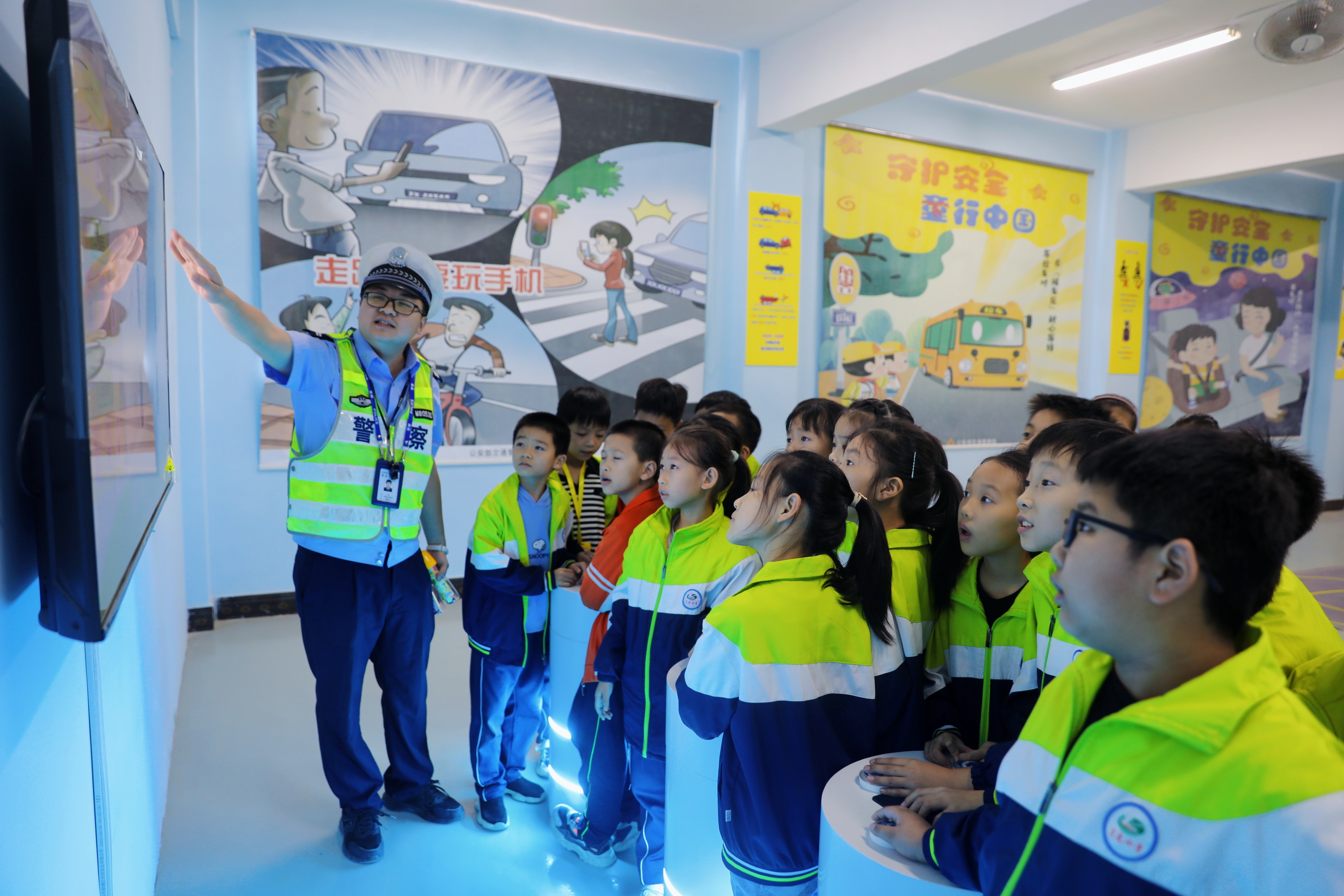在交通教育实践基地,交警带领学生们观看了交通安全警示教育片和因交通事故损毁的车辆,并耐心详细地为学生普及了交通安全知识,讲解各种交通安全标志,加深学生的理解和记忆。同时,交警还利用基地内设置的马路、信号灯、斑马线等模拟交通场景,学生们根据变化的红绿灯指示,模拟了行人过马路以及不遵守交通规则可能发生的事故场景。