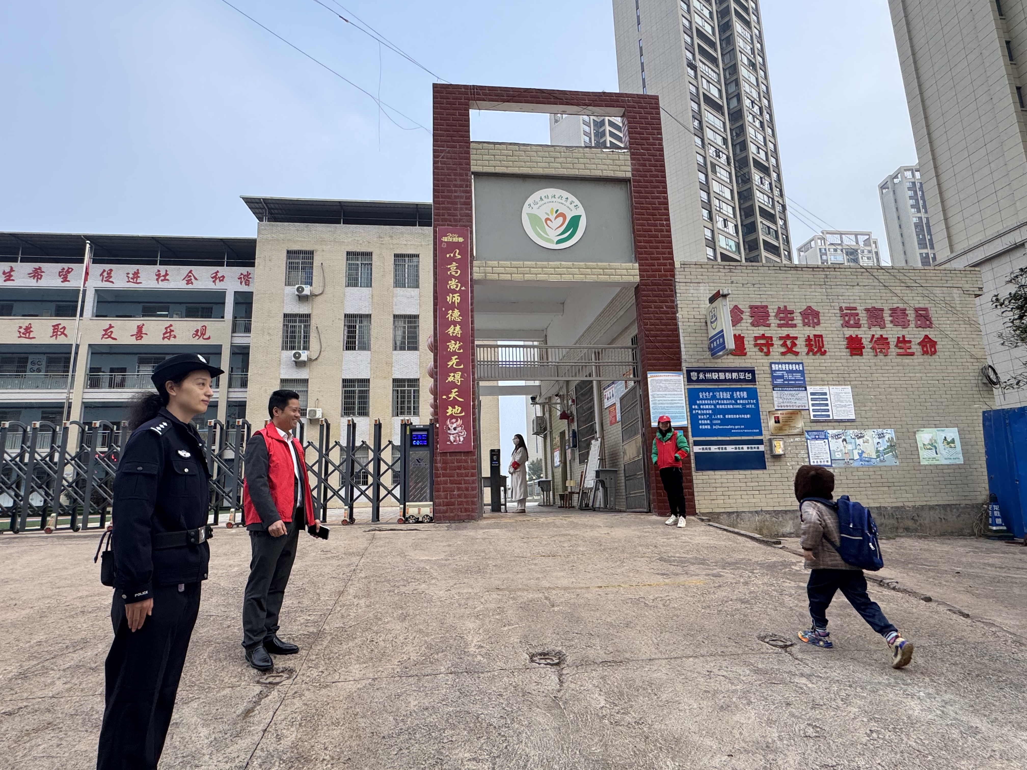 为确保校园周边秩序通畅,根据辖区校园上下学时段人流、车流密集的特点,执勤警力提前到岗到位,全面落实“一校一警”“护学岗”制度,采取“定岗、定人、定时、定责”模式,动态掌握校园周边治安环境变化,及时消除安全隐患,全力筑牢校园安全防线。