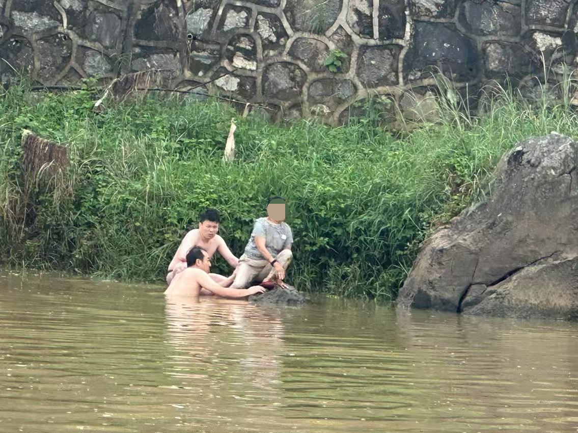 “我们俩熟悉水性,先游过去看看,救人要紧!”两名民辅警主动请缨,毫不犹豫跳入了水中,决定先游到河中央的一块石头处,再适时拦截救援落水者。
