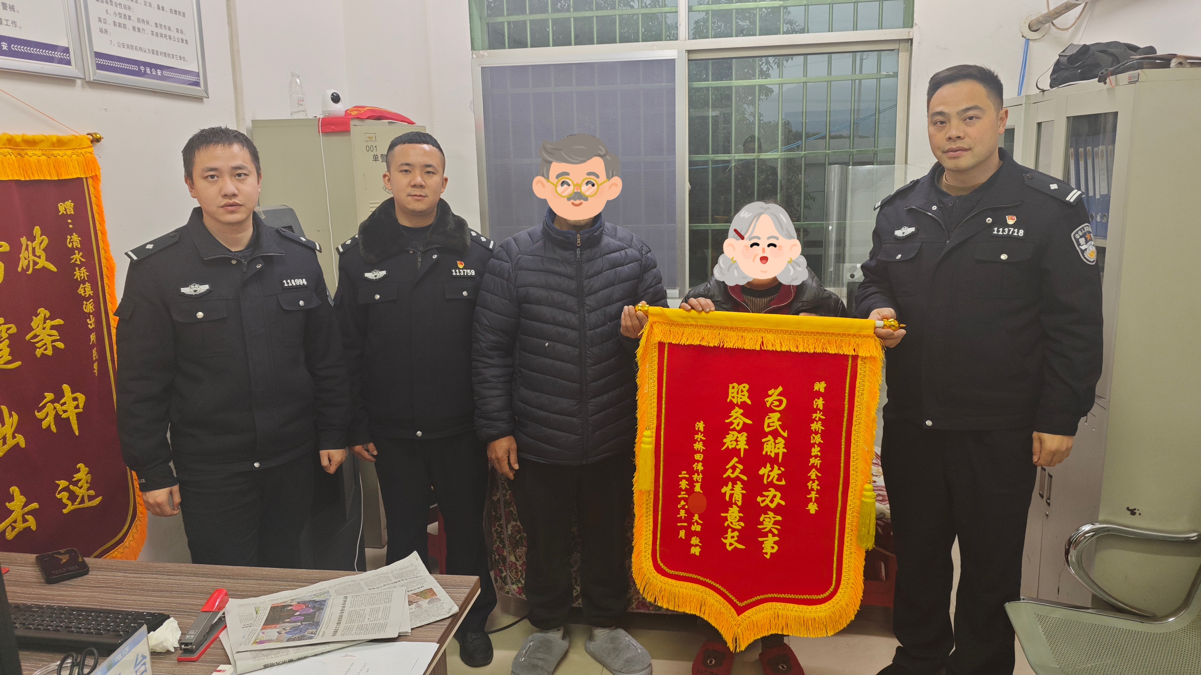 近日,村民夏先生夫妇将一面印有“为民解忧办实事 服务群众情意长”的锦旗送到宁远县公安局清水桥派出所,感谢民警热心帮助其找回“走失”的孙女。