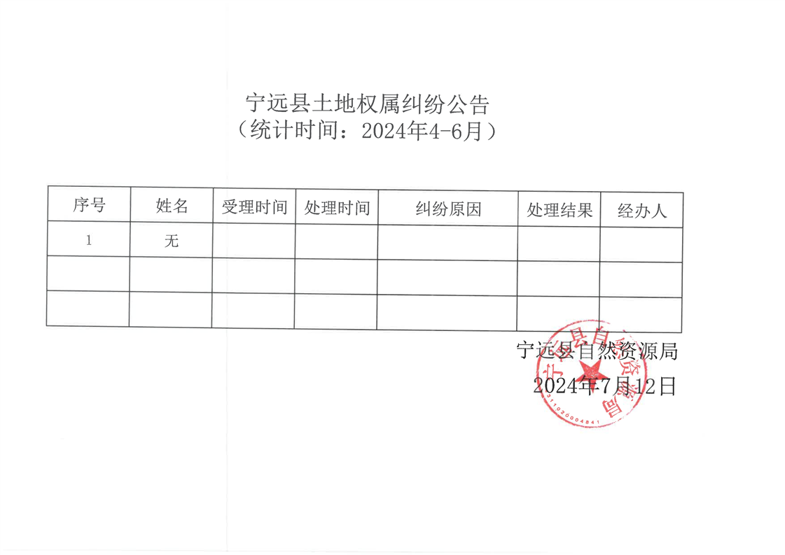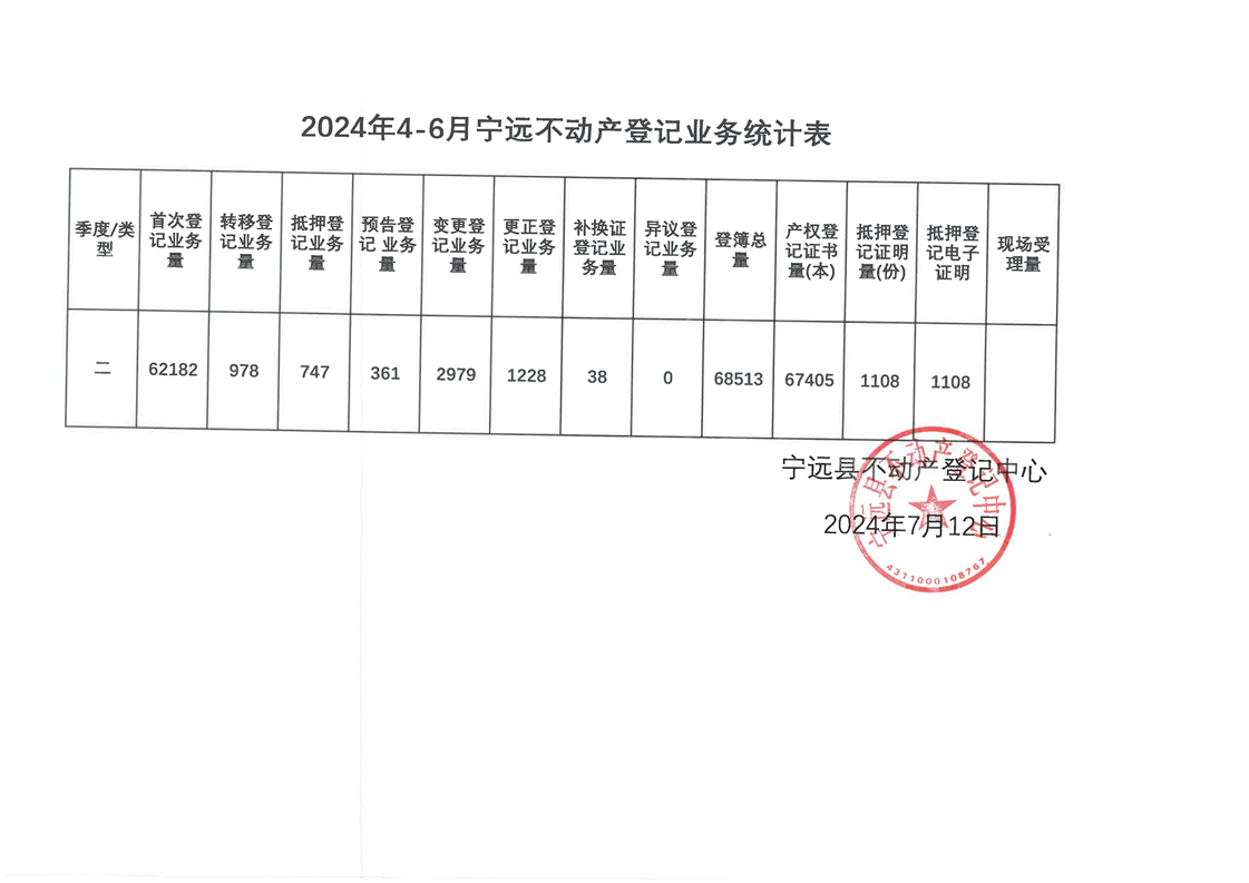 宁远不动产登记统计数据公示表(2024年4月-2024年6月)