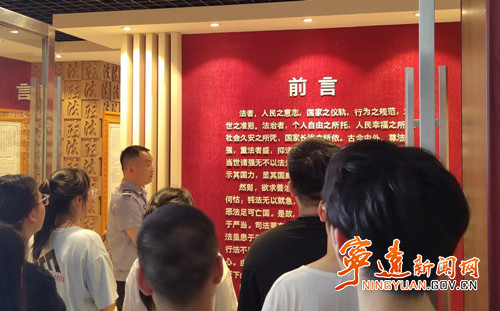 法治展馆之行,沐浴法治春风。集中培训后,讲解员还带领大学生们参观省级青少年法治、廉政文化展馆,并逐一讲解。该展厅涵盖前言、法治文化、法治发展、以案说法、法治宁远等7个部分,通过“法治宣传+互动实践+教育培训”的形式,让在场的所有大学生普法志愿者都体验了一场生动的法治之旅,让他们在春风化雨的意境中受到法治熏陶。