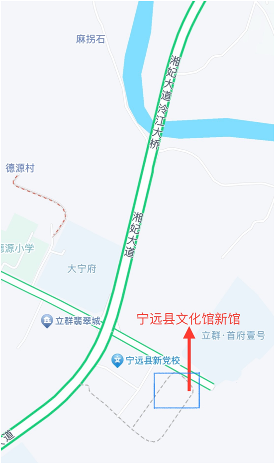 二、新馆地址:宁远县图书馆文化馆及非物质文化遗产馆(舜帝南路与湘妃路交汇处——县党校、县政务中心旁边。)