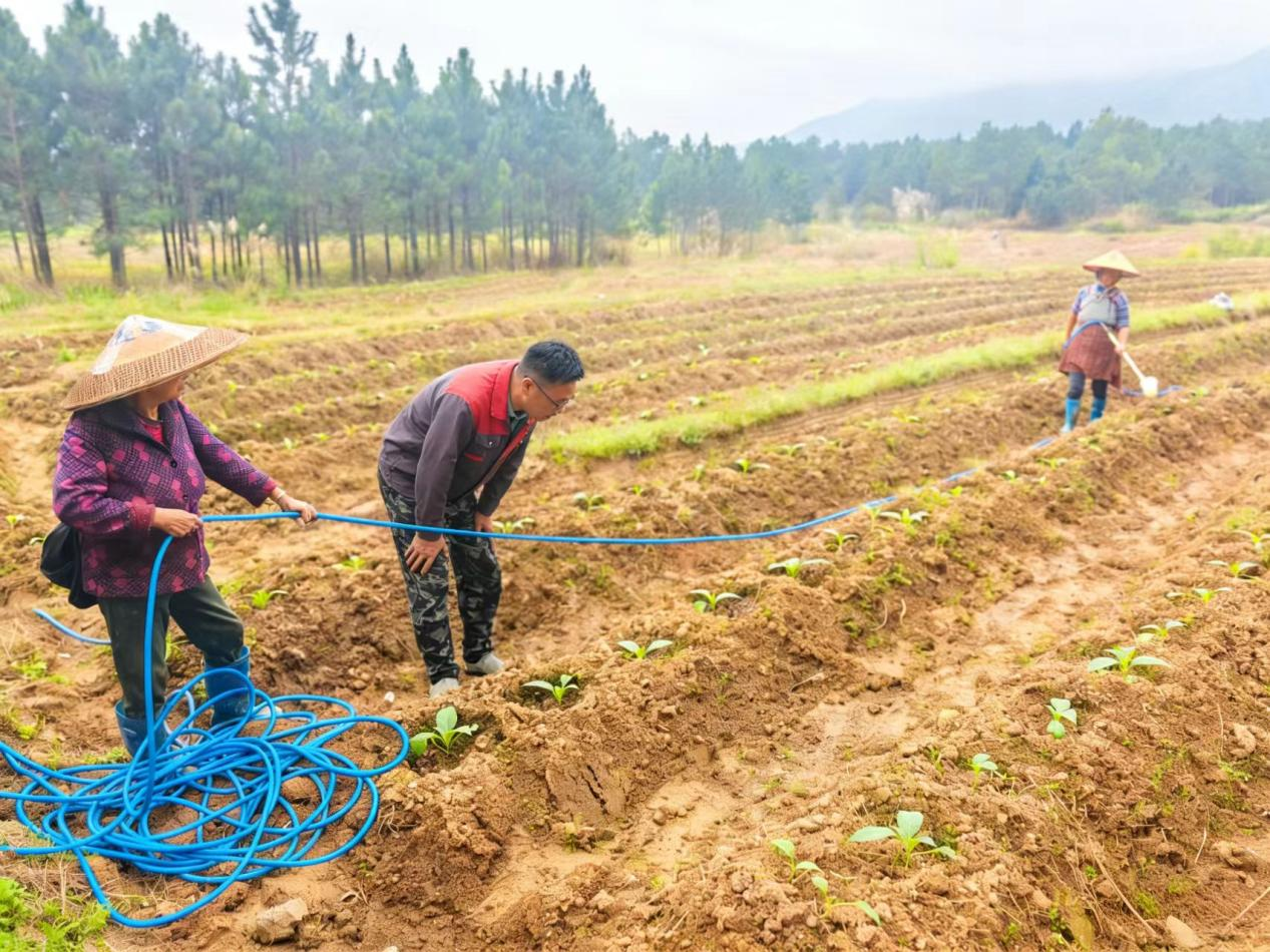 种烟大户欧阳少勇的烟田里,他一边指导工人作业,一边介绍:“现在烟苗正处于旺长期,管护工作一点都马虎不得,水肥要跟上,病虫害要防住,这样才能保证后期的产量和品质。”为保障烟苗健康生长,欧阳少勇每天扎根田间,仔细查看苗情,根据天气变化和土壤及时调整管护措施。因种植面积较大,他聘请20名村民务工,既提升了管护效率,也带动群众就近增收。如今,不少当地村民通过烟田务工,实现了在家门口就业增收。