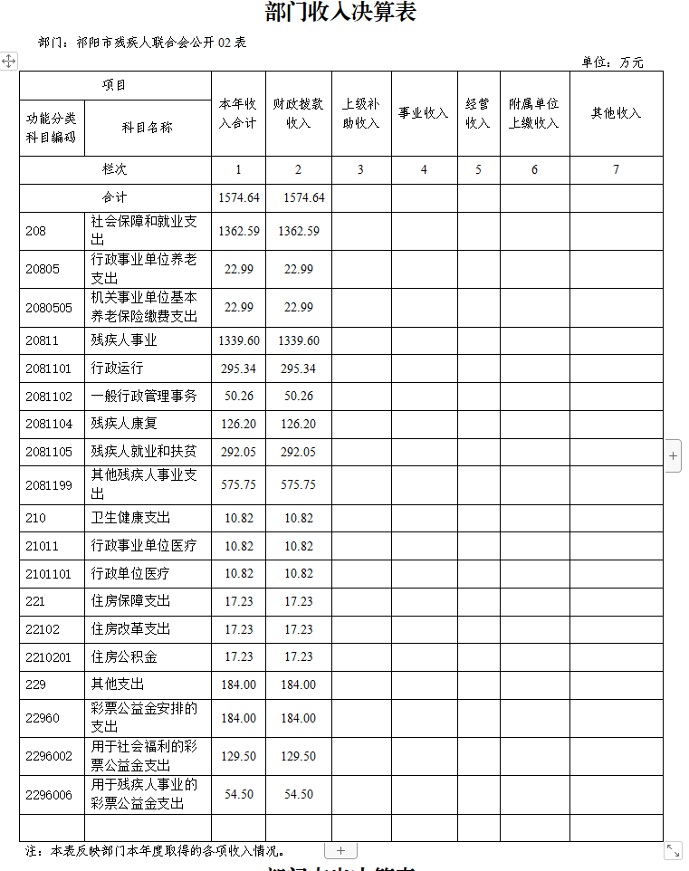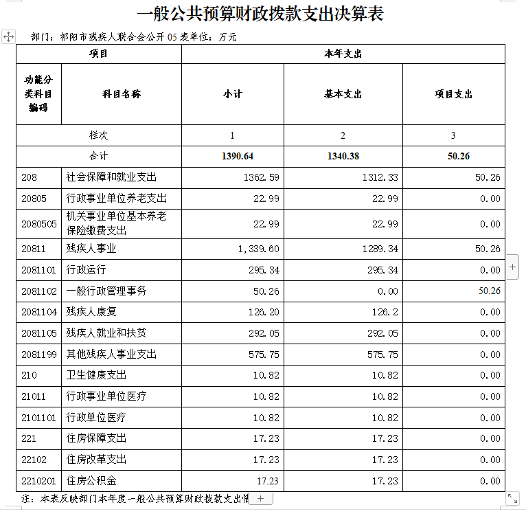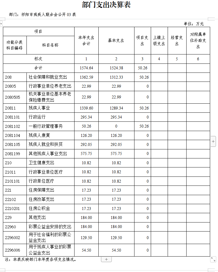 2、社会保障和就业支出(类)残疾人事业(款)行政运行(项)