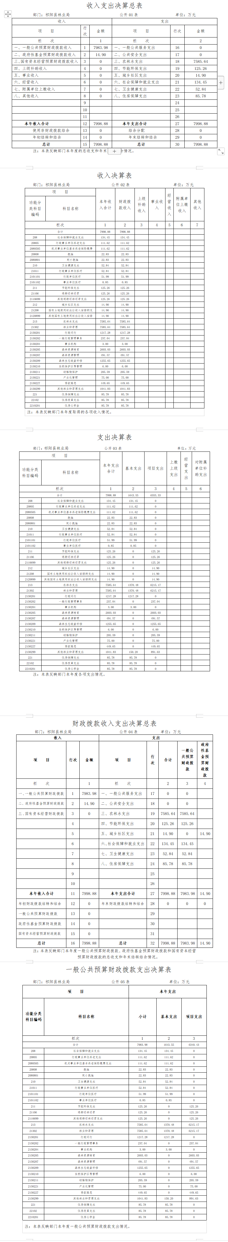 2020年度收、支总计7998.88万元。与2019年相比,增加69.88万元,增长0.88%,主要是因为禁食野生动物退出补偿等林业和草原支出方面和政府性基金财政拨款的增长。