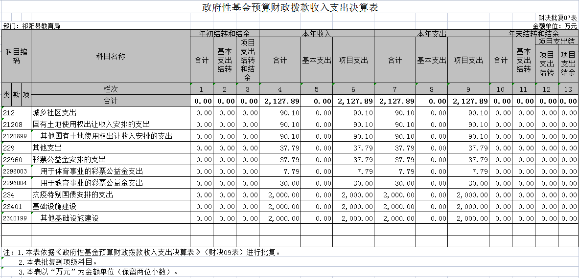 2020年度政府性基金预算财政拨款收入2127.89万元;年初结转和结余0万元;支出2127.89万元,全部为项目支出,主要用于2020年城区学位建设、高中学校基础项目建设及彩票公益金安排用于教育事业的支出。年末结转和结余 0万元。