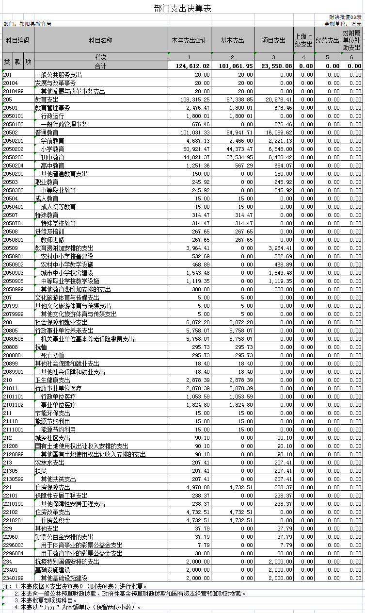 本年度支出总计124,612.02万元,其中:基本支出101,061.95万元,占81.1%;项目支出23,550.07万元,占18.9%;上缴上级支出0万元,占0%;经营支出0万元,占0%;对附属单位补助支出0万元,占0%。