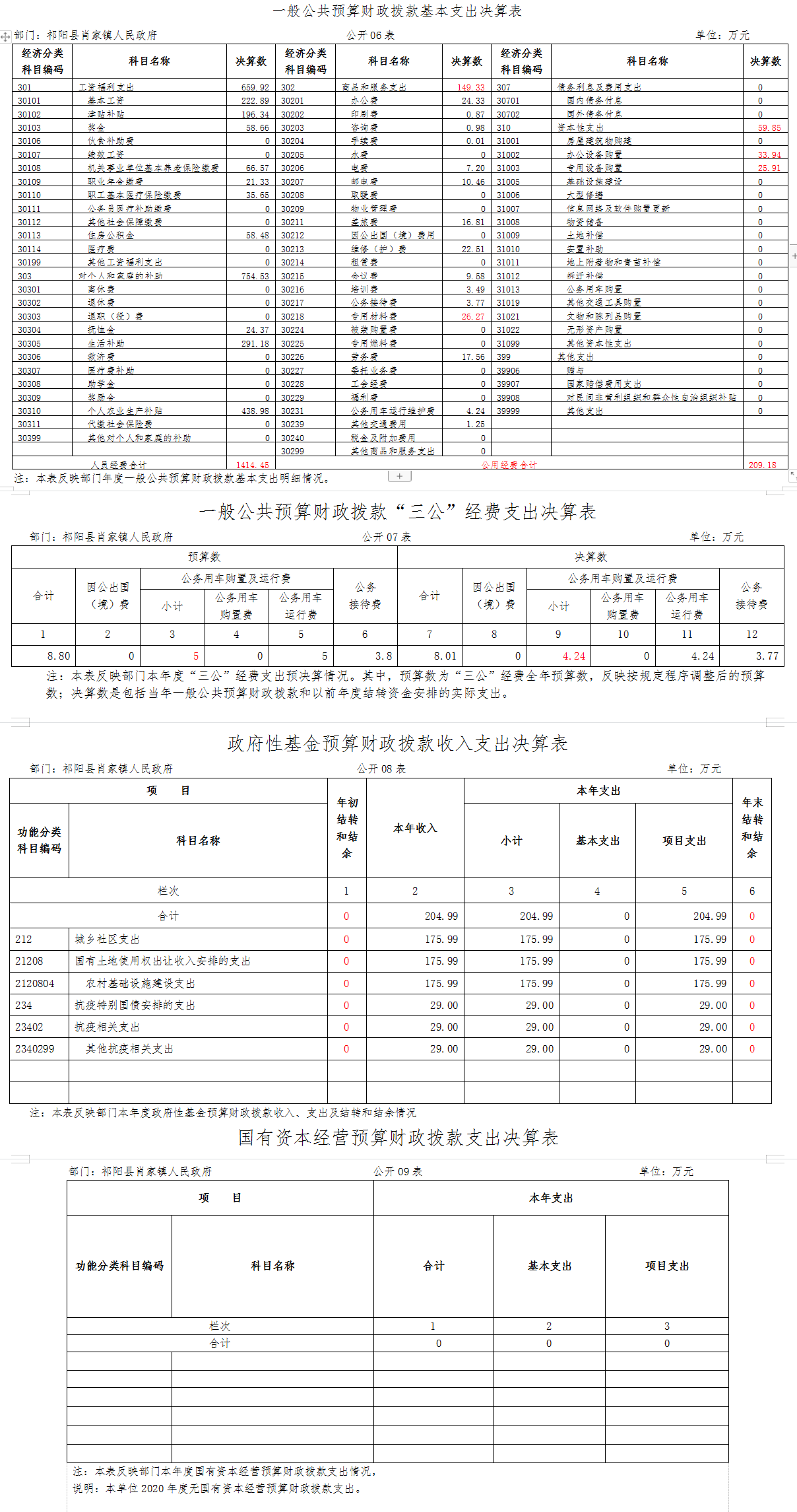 2020年度政府性基金预算财政拨款收入204.99万元;年初结转和结余0万元;支出204.99万元,其中基本支出0万元,项目支出204.99万元;年末结转和结余0万元。