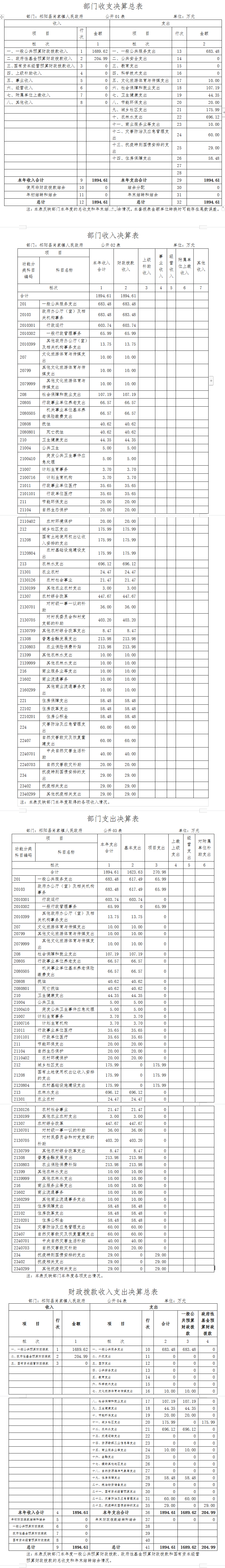 本年收入合计1894.61万元,其中:财政拨款收入1894.61万元,占100%;上级补助收入0万元,占0%;事业收入0万元,占0%;经营收入0万元,占0%;附属单位上缴收入0万元,占0%;其他收入0万元,占0%。