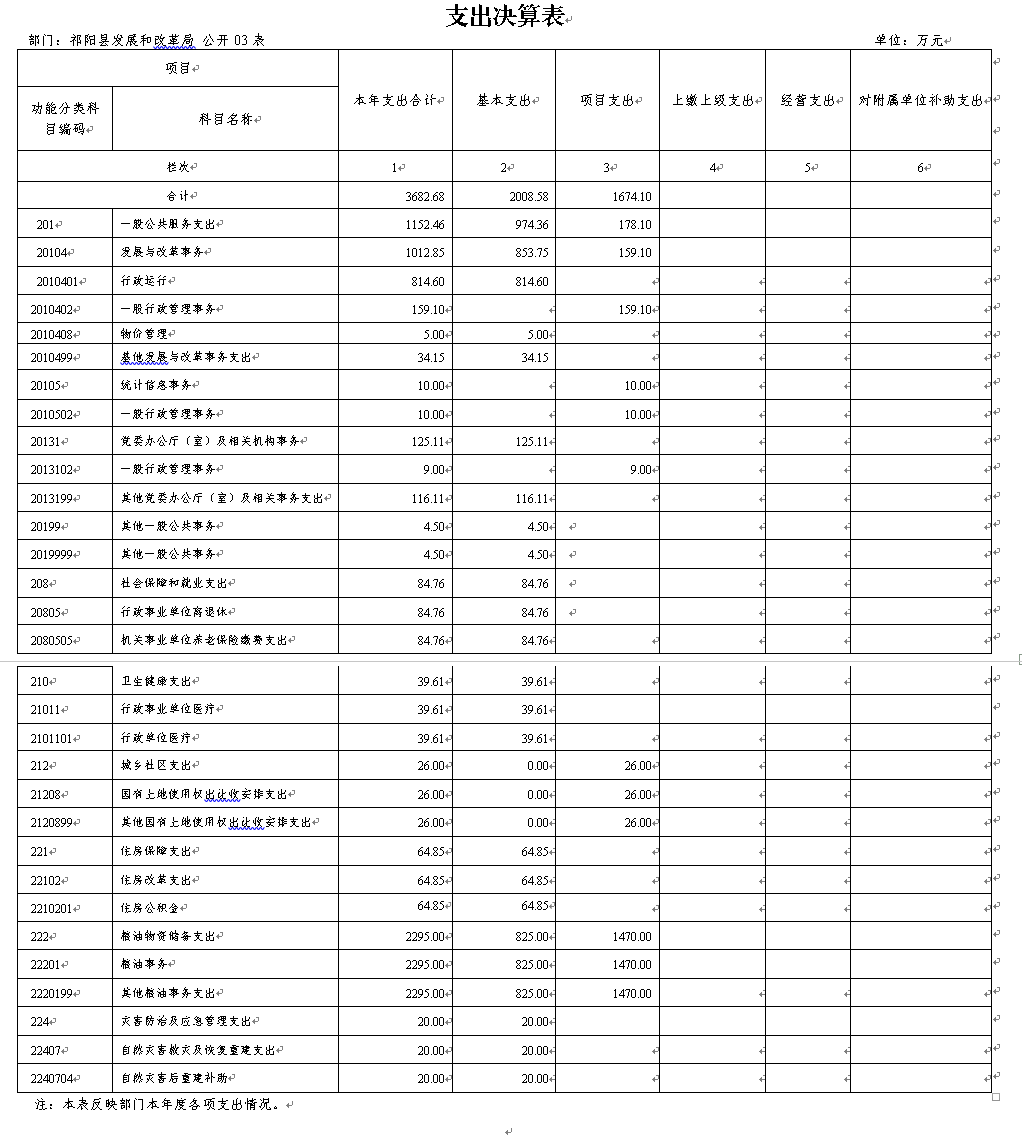 祁阳县发改局2020年度部门整体支出