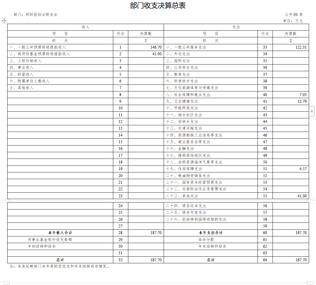 (二)决算单位构成。祁阳县妇女联合会2020年部门决算汇总公开单位构成包括:祁阳县妇女联合会本级。
