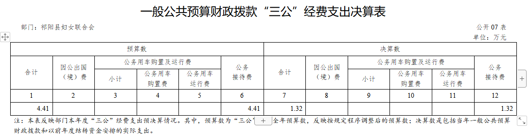 七、一般公共预算财政拨款“三公”经费支出决算表