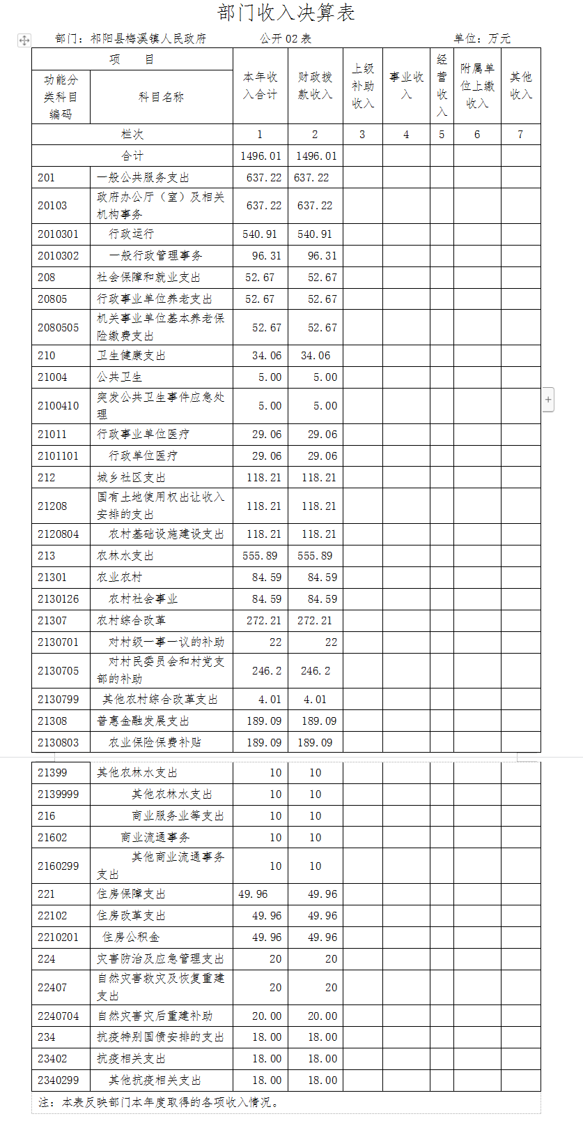 (7)、221住房保障支出(类)49.96万元:22102住房改革支出49.96万元:2210201住房公积金49.96万元。