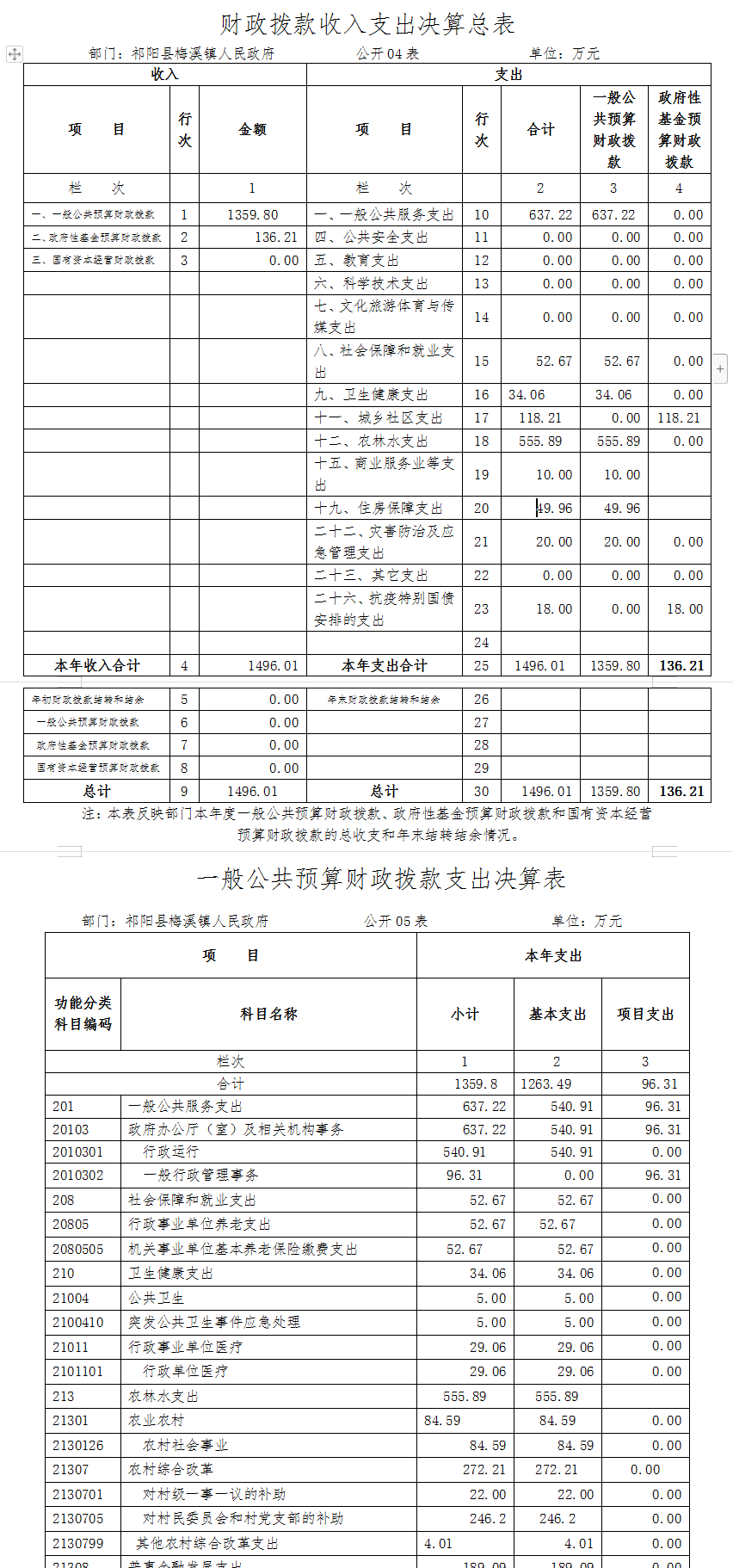 一、部门收支决算总表