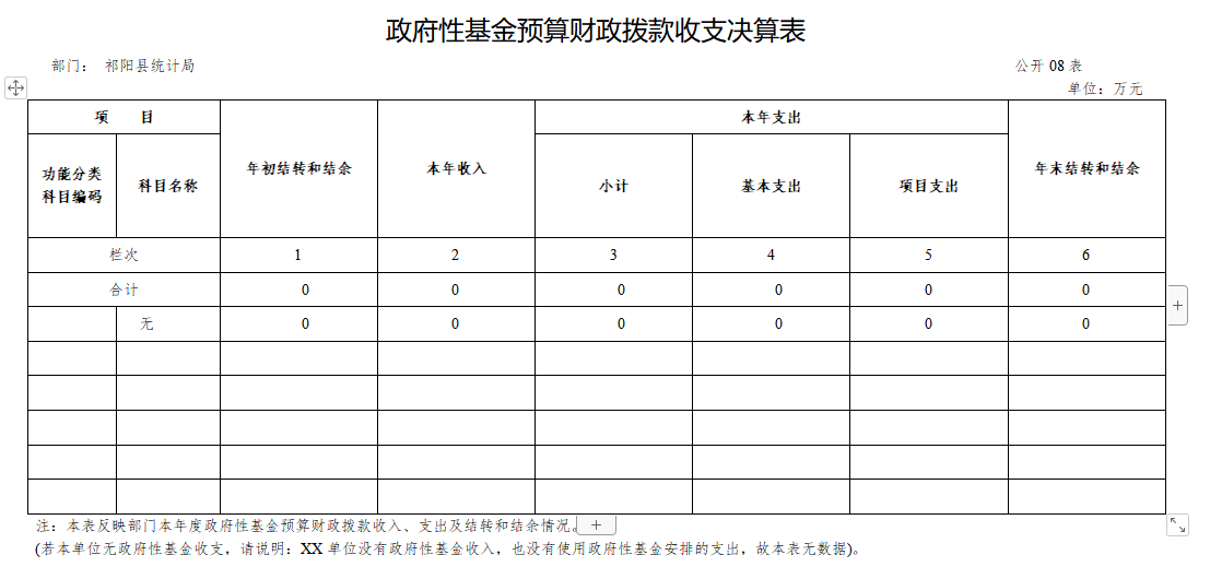 八、政府性基金预算财政拨款收入支出决算表