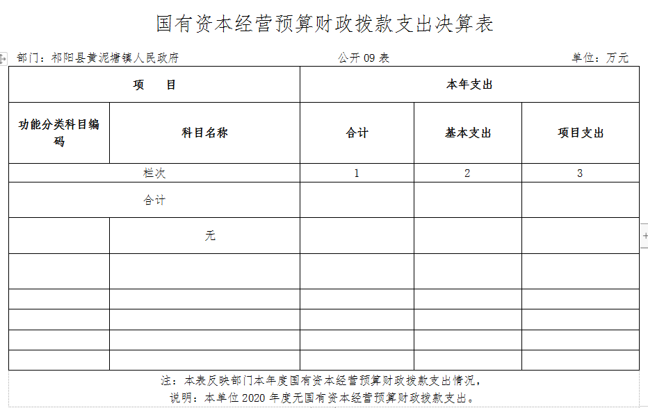 2020年度国有资本经营预算财政拨款收入0万元;年初结转和结余0万元;支出0万元,其中基本支出0万元,项目支出0万元;年末结转和结余0万元。