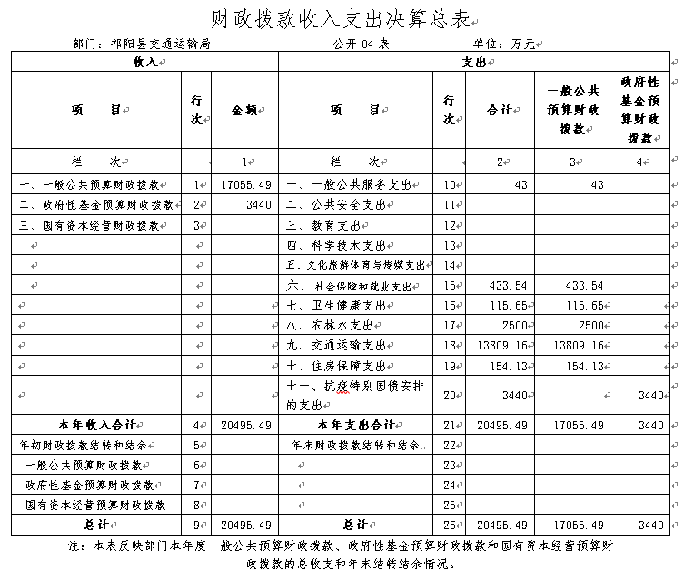 21.交通运输支出(类)成品油价格改革对交通运输的补贴(款)成品油价格改革补贴其他支出(项)