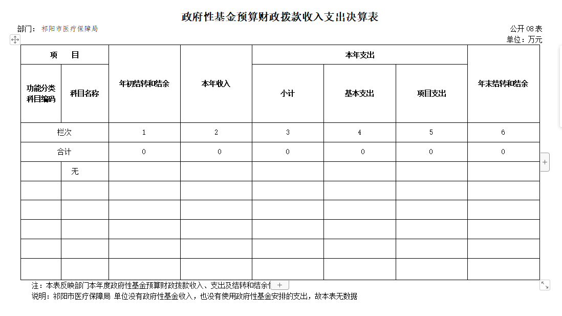 2021年度政府性基金预算财政拨款收入0万元;年初结转和结余0万元;支出0万元,其中基本支出0万元,项目支出0万元;年末结转和结余0万元。具体原因是:本单位无政府性基金收支。